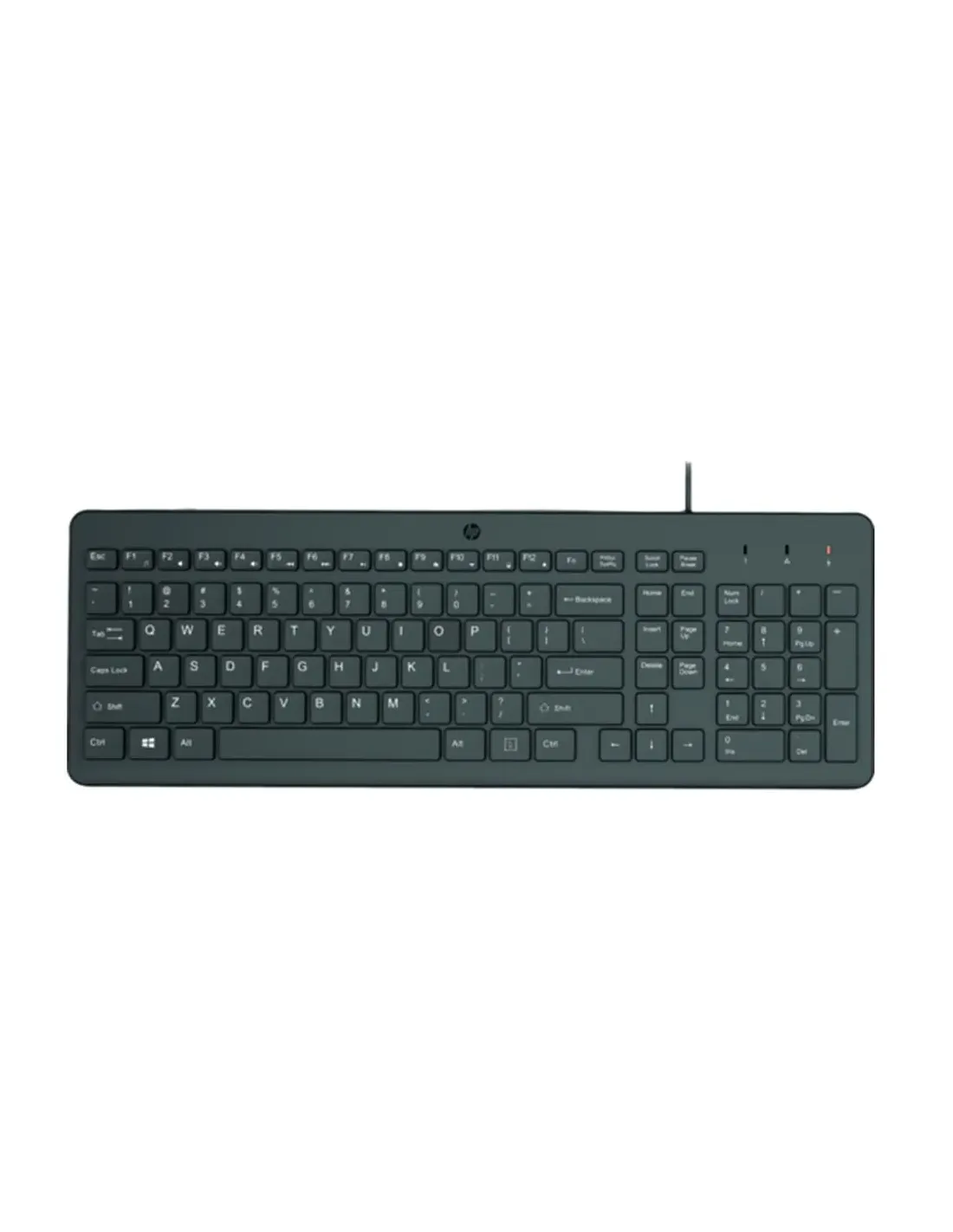 Teclado con cable HP 150Compañero de viaje ideal, este cómodo teclado con todas las prestaciones irá contigo dondequiera que vayas.Rápido, cómodo y precisoEl diseño de este teclado chiclet resulta muy elegante. Gracias a su perfil bajo, las pulsaciones son rápidas, cómodas y precisas... ¡exactamente lo que buscas!Un atajo en toda reglaLos controles habituales se integran en 12 combinaciones de atajos con la tecla Fn: música, películas, volumen, página de inicio, marcadores y correo electrónico. Eso sí que es un atajo.Conéctalo y empieza a teclearEmpieza a teclear al instante con la configuración plug-and-play mediante USB que te conecta con tu PC de forma rápida y sencilla.Comodidad durante todo el díaEl diseño de este teclado se adapta a tu posición natural, sin sobrecargar tus muñecas, y te ofrece la máxima comodidad durante todo el día.EspecificacionesCompatibilidad con hardware Compatible con ordenadores que dispongan de un puerto USB-A.Contenido de la caja Teclado, Guía de inicio rápido, Tarjeta de garantíaEstructura de claves Plunger, Low profile key travel, 2.5 mmGarantía Garantía limitada de 2 añosIndicador led Caps lock, Num lock, Scroll lockLongitud del cable 1 000 mmRequisitos mínimos del sistema Puerto USB Type-ASe requiere registro NoSistemas operativos compatibles Windows 11, Windows 10Tipo de conexión USB tipo A con cable