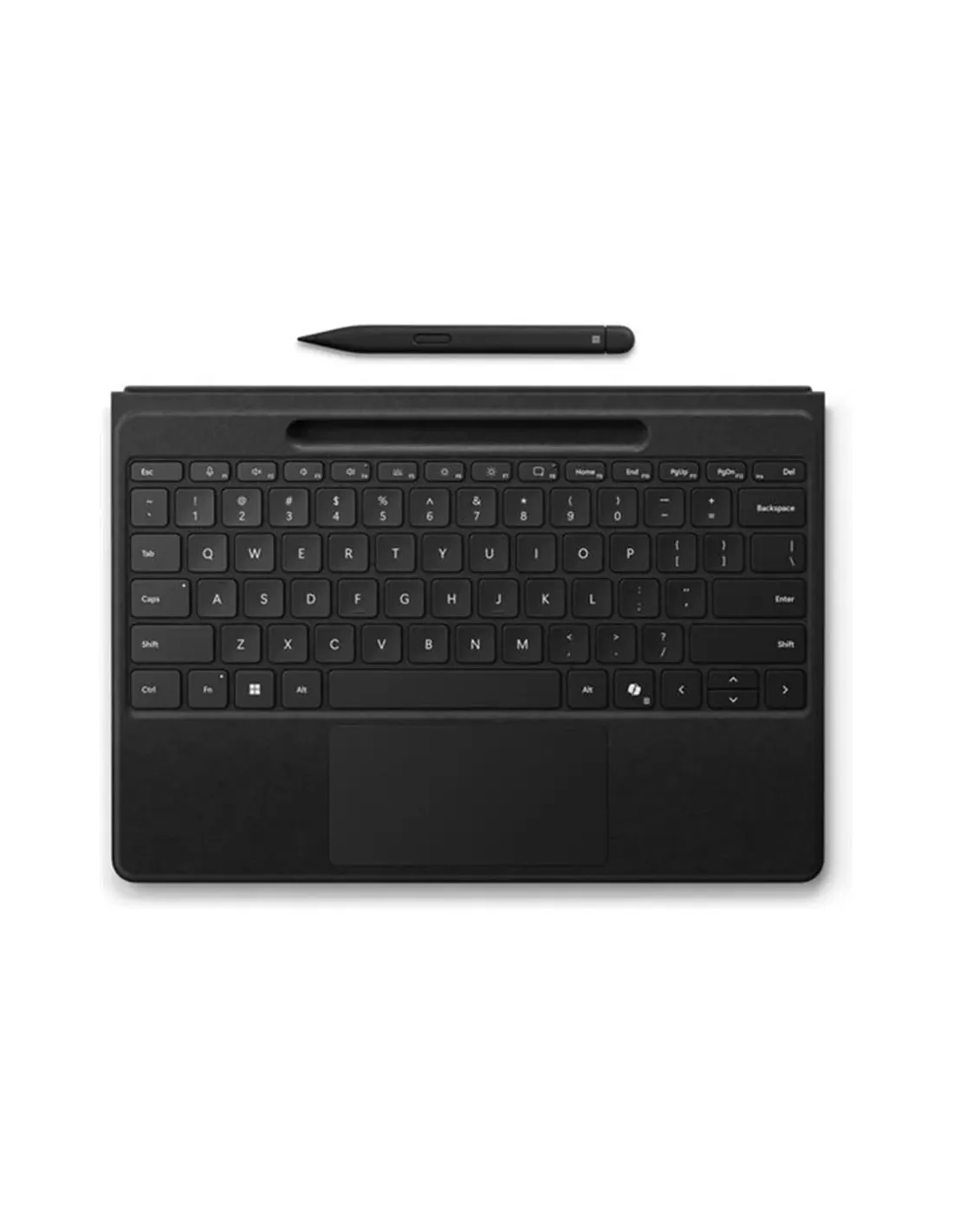 - GENERAL Tipo: Inalámbrico Tipo de dispositivo: Teclado Tecnología del teclado: Mecánica Retroiluminación: Sí Localización y diseño: QWERTY español Interfaz: Bluetooth LE Distancia operativa máxima: Hasta 10 m Dispositivos integrados: Panel táctil, acelerómetro, bandeja de carga y almacenamiento Surface Slim Pen 2 Incluye: Slim Pen Función de las teclas de acceso directo: Brillo, accesos directos de Windows, controles multimedia, silencio del micrófono - DIMENSIONES Y PESO Anchura: 28.9 cm Profundidad: 22.1 cm Altura: 0.525 cm Peso: 340 g - BATERÍA Tipo: Recargable Tiempo de ejecución (máximo): 41 horas - COMPATIBILIDAD Diseñado para: Microsoft Surface Pro 11, Pro 8, Pro 9 - GARANTÍA DEL FABRICANTE Servicio y mantenimiento: Garantía limitada - 1 año - DIVERSO Color: Negro