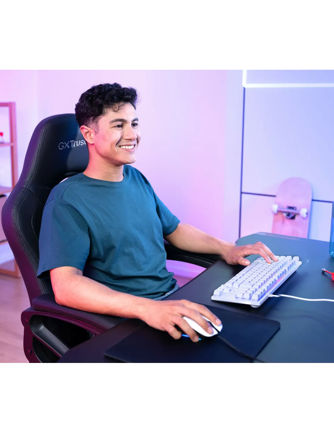 Teclado con iluminación TKL GXT 833W ThadoTeclado para gaming metálico y compacto con iluminación LED multicolorDe tipo sostenibleFabricado con un 69% de plástico reciclado, el teclado Thado TKL es la clave para respetar el medio ambiente.Cuando 0/10 es algo buenoUn diseño compacto y sin teclas numéricas separadas (TKL) ahorra espacio y reduce el desorden del escritorio,para que puedas jugar cómodamente y lucirte.Sensación de brilloLuces LED multicolor que animan tus sesiones de juego, para que seas siempre el centro de atención en las partidas multijugador.