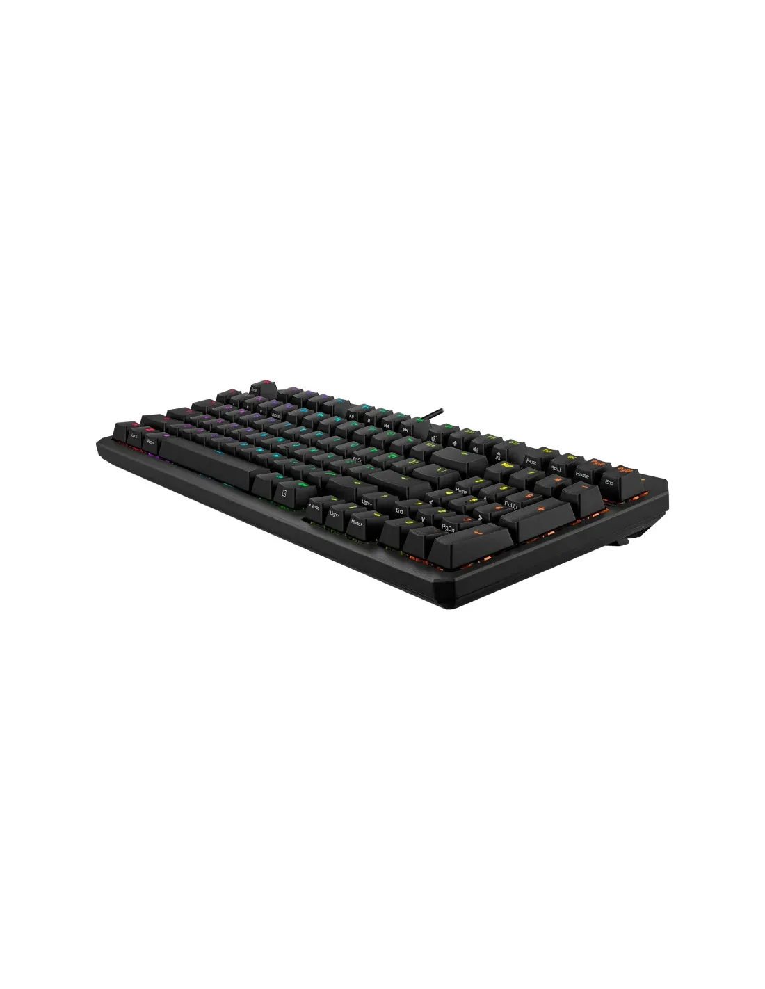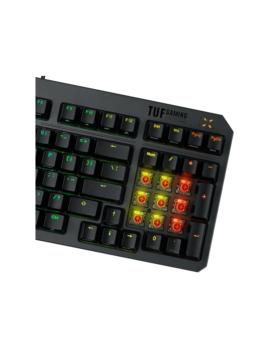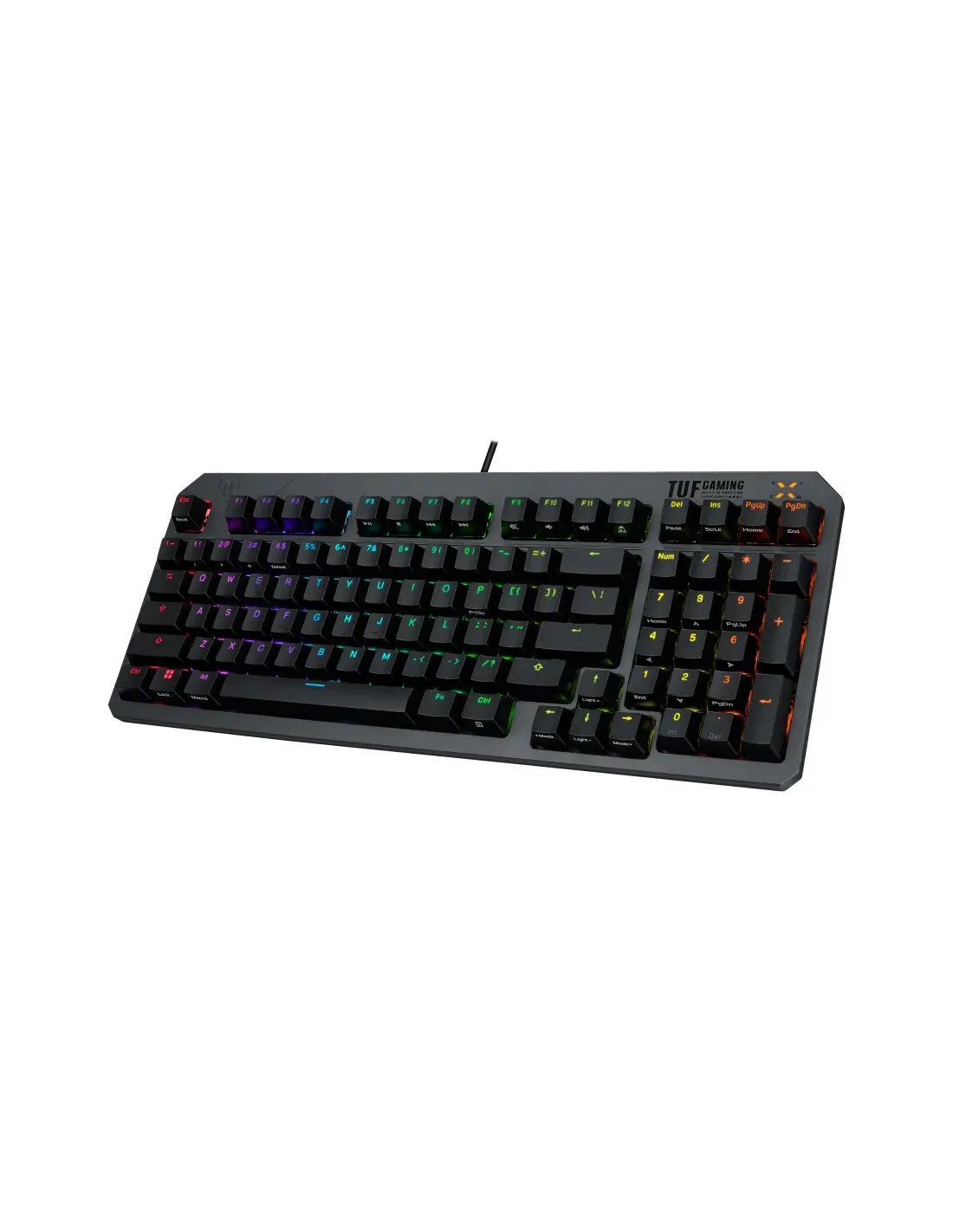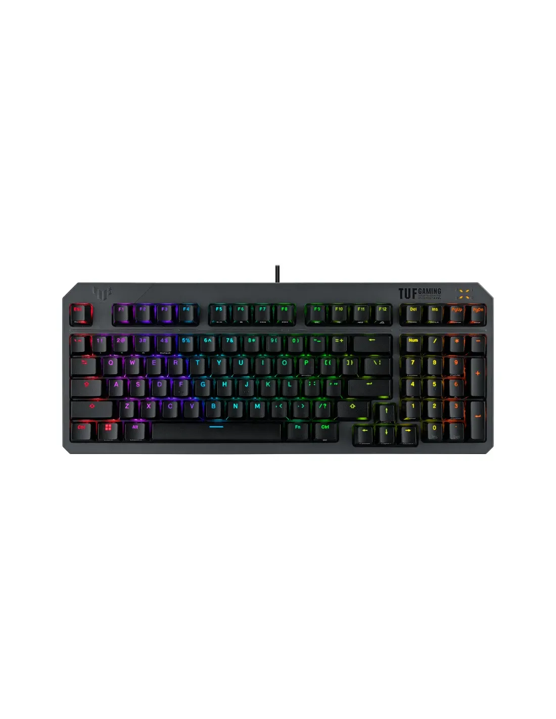 Diseño compacto y portátil: el diseño de 97 teclas es altamente portátil y libera más espacio para la mano del mouse, y la ranura de administración de cables trasera permite configuraciones de escritorio más ordenadasImpermeabilidad IP57 y resistencia al polvo: protección líder en la industria para una limpieza fácil y una durabilidad duradera. Conmutadores RGB óptico-mecánicos: con n-key rollover, 100 % anti-ghosting y una vida útil de 100 millones de pulsaciones de teclas. Soporte con junta de silicona y espuma amortiguadora: absorbe ruidos y ecos para mejorar la acústica del teclado y experiencias de escritura inigualables. Placa superior desmontable: permite diferentes estilos y fácil mantenimiento Iluminación RGB y Aura Sync: iluminación RGB por tecla con hasta 16,8 millones de colores y software Armory Crate para ajustes intuitivos y sincronización con productos compatibles con ASUS Aura.