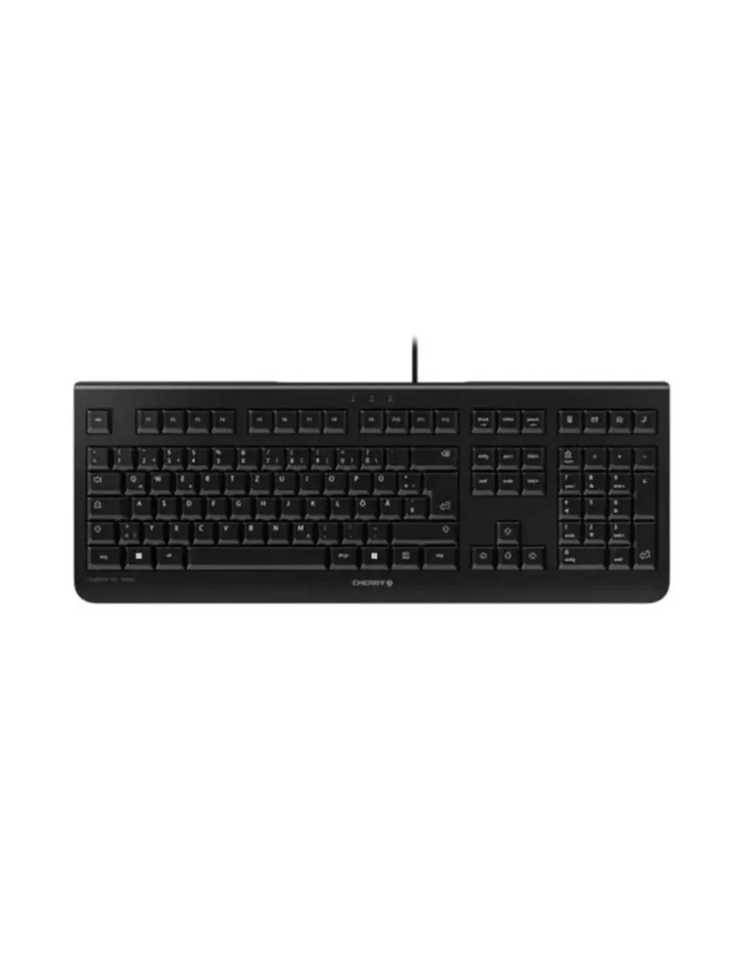 Características del Teclado Cherry KC 1000 USB QWERTY Portugués NegroEl Cherry KC 1000 es un teclado alámbrico diseñado para ofrecer precisión, durabilidad y comodidad en entornos profesionales y de uso intensivo. Su formato completo, junto con una construcción robusta y una experiencia de escritura optimizada, lo convierten en una solución fiable para oficinas, desarrolladores y usuarios que buscan rendimiento constante en su día a día.Diseño resistente para uso profesionalFabricado con materiales de calidad, este teclado garantiza una larga vida útil y un funcionamiento estable incluso bajo uso intensivo. Su estructura en ABS y teclas duraderas lo hacen ideal para entornos de trabajo exigentes.Material de las teclas: ABS (alta resistencia)Vida útil: hasta 10 millones de pulsacionesDiseño robusto orientado a oficinaEscritura cómoda y precisaGracias a su recorrido de tecla optimizado, el Cherry KC 1000 ofrece una respuesta táctil uniforme y confortable, perfecta para largas jornadas de trabajo. Su distribución QWERTY en portugués asegura adaptación inmediata para usuarios de este idioma.Recorrido de teclas de 2,8 mmFormato completo con teclado numéricoDistribución QWERTY portuguésConectividad fiable y sin complicacionesLa conexión USB alámbrica garantiza una transmisión estable sin latencias ni interferencias. Además, su sistema plug and play permite comenzar a usarlo de inmediato, sin necesidad de configuraciones adicionales.Interfaz USB tipo AFunción plug and playCompatible con Windows 7, 8, 10 y 11Funciones prácticas para mayor productividadIncorpora teclas de acceso rápido y funciones multimedia que facilitan el uso diario, mejorando la eficiencia en tareas ofimáticas y gestión de contenidos.4 teclas de acceso rápidoFunciones multimedia integradasAccesos directos a funciones de WindowsDiseño funcional y conectividad cómodaSu cable de 1,8 metros proporciona flexibilidad en la instalación, adaptándose fácilmente a cualquier espacio de trabajo. Su diseño ligero y compacto permite integrarlo sin esfuerzo en cualquier escritorio.Longitud de cable: 1,8 mDimensiones: 458 x 170 x 20 mmPeso: 530 gColor: negroOtras especificacionesTipo: teclado alámbricoRetroiluminación: noCertificaciones: BSMI, CE, China RoHS, FCC, GS mark, RCM, UKCA