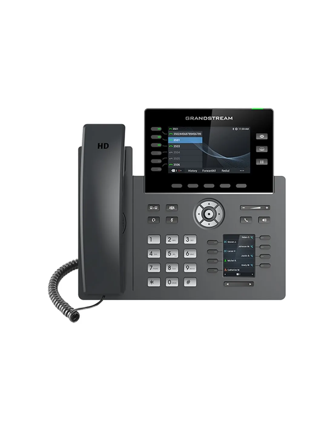 Admite 6 líneas y 6 cuentas SIP mientras presenta un diseño elegante y un conjunto de funciones de próxima generación que incluyen Wi-Fi integrado, compatibilidad con Bluetooth, 48 teclas virtuales multipropósito (MPK), dos puertos Gigabit y más.