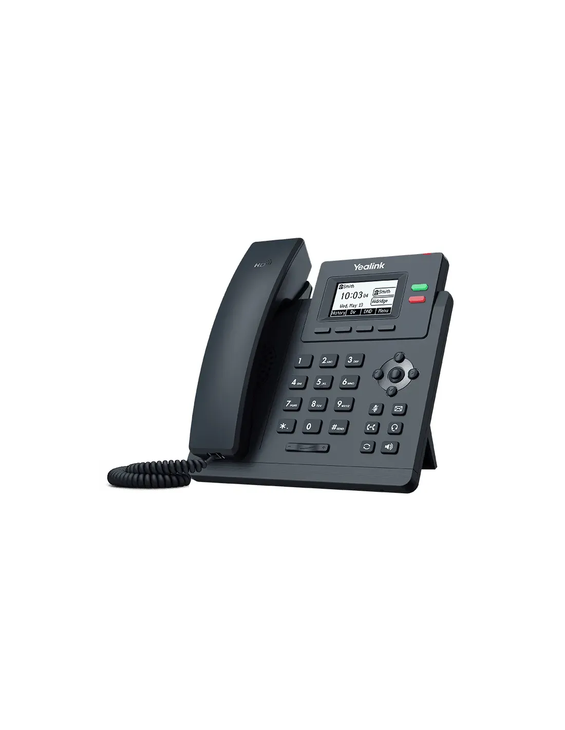 Yealink SIP-T31P. Tipo de producto: Teléfono IP, Color del producto: Gris, Tipo de auricular: Terminal con conexión por cable. Capacidad de lista de direcciones: 1000 entradas. Pantalla: LCD, Diagonal de la pantalla: 5,84 cm (2.3"), Resolución de la pantalla: 132 x 64 Pixeles. Codecs de voz: G.722, G.729, AGC, G.729A, AJB, PLC, G.711Mu, VAD, G.711a, G.723.1, G.726, iLBC, CNG, OPUS. Tipo de interfaz Ethernet LAN: Ethernet rápido, Ethernet LAN, velocidad de transferencia de datos: 10,100 Mbit/s, Estándares de red: IEEE 802.3af, IEEE 802.1p, IEEE 802.1Q, IEEE 802.1x