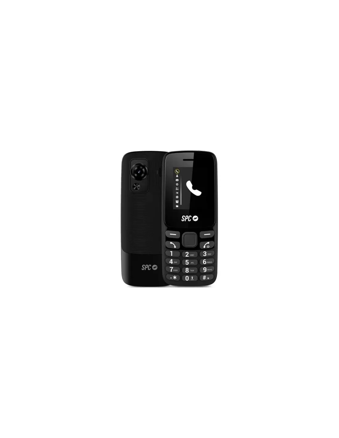 Marca SPC Modelo 2340N Memoria - Interna: 128 Mb - Ampliable: Micro SD de hasta 256 GB Pantalla - 1,77" (4,5 cm) - Resolución 128 x 160 pixeles - Indicadores de señal de movil y estado de la batería Cámara Cámara   - Trasera: 0,08 Mpx Redes/Bandas Tarjeta SIM - 2 x Nano SIM Bandas - 4G (B1, B3, B7, B8, B20), 3G (900 / 2100 MHz), 2G (850 / 900 / 1800 / 1900 MHz) - Bluetooth: 5.0 Otras Características Salida de audio - 3.5 mm. Jack Batería - Iones de litio de 1150mAh - Conexión USB: USB-C Otras funcionalidades - Agenda con 500 contactos - Memorias rápidas: 9 - Idiomas: Español, English, Francais, Portugués, Italiano, Catalá, Galego, Euskara, Deutsch, Polski, Turkce, Român?. - Manos libres - Vibración - Radio FM - Alarma - Linterna - Calculadora - Calendario - Opción colgante Dimensiones y peso - 116,5 x 48,4 x 15 mm - 77,5 g Fecha de revisión 27-03-2025 por DR
