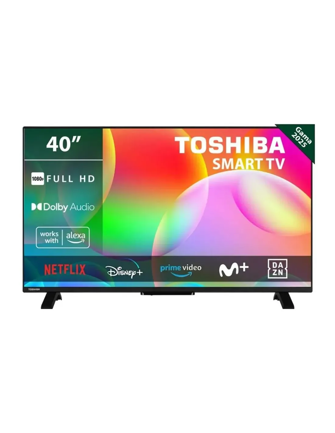 El Toshiba 40LV2563DG es un televisor Smart TV de 40 pulgadas con resolución Full HD y tecnología Direct LED, ideal para quienes buscan buena calidad de imagen con soporte HDR10 a un precio accesible. Incorpora el sistema operativo VIDAA, compatible con Alexa y Google Assistant, y ofrece acceso directo a plataformas como Netflix, YouTube o Prime Video. Su sonido Dolby Audio de 16?W proporciona una experiencia aceptable para uso doméstico, y cuenta con conectividad completa: Wi?Fi, Bluetooth, 2 HDMI, 1 USB, salida óptica y posibilidad de grabación por USB. Su diseño es elegante y delgado, con soporte VESA para montaje en pared, siendo una opción muy equilibrada para quienes no necesitan resolución 4K pero valoran funciones inteligentes y buena conectividad.Características:No se pierda nunca sus programas favoritosDesde los últimos éxitos de la gran pantalla hasta su colección favorita de películas y música de moda, su televisor Toshiba lo tiene todo. Las principales aplicaciones de streaming integradas de serie, actualizadas y listas para usarse.Más inteligentes que nuncaHablemos: Todo más sencillo gracias al control por voz de su televisor. Nuestra gama le permite utilizar Amazon Alexa o Google Assistant. Conéctese simplemente a su dispositivo preferido y empiece a explorar.Full HD: Full HD ofrece una resolución 1080p, que aumenta el número de píxeles por pulgada frente a HD Ready para garantizar una claridad de imagen mejorada y un streaming de máxima calidad.Procesamiento Dolby Audio: El procesamiento de audio Dolby proporciona una experiencia mejorada, independientemente de lo que esté viendo, con un sonido más rico, más claro y más potente.Especificaciones Toshiba 40LV2563DG:PANTALLATamaño de Pantalla (cm y pulg): 40" / 100cmTipo Panel: Direct Back Light (DLED)Resolución: FHD (1920 x 1080)Brillo: 250SONIDODolby Audio?: NoPotencia de salida de audio (RMS): 2x8WTipo de altavoz: Down FiringSubwoofer interno: NoDTS: NoEcualizador: 5 bandOnkyo: NoGer (D) + Nicam Stereo: SiACCESORIOSControlador a distancia: SiPila del mando a distancia: (AAA) x 2 AlkalineGuía Rápida de Inicio: SiMando a distancia pequeño: NoFUNCIONESHDMI? ARC: Through HDMI2Grabación por USB (PVR Ready): SiClonación de USB de lista de canales: SiTeletexto: SiHDMI? CEC: SiModo Hotel básico: Passive- Basic Hotel ModeReproductor multimedia: SiMHL vía HDMI® (Mobile HD Link): NoBloqueo para niños: SiReproducción en NTSC: SiVÍDEOWide Color Gamut: NoHDR: SiModos de imagen: Natural, Cinema, Sports, DynamicDolby Vision HDR: NoTRU Flow: NoTRU Resolution: SiTRU Micro Dimming: NoMEMC: NoUHD Upscaler: NoSINTONIZADOR / EMISIÓNDecodificador HEVC (H.265): SiTipo sintonizador: HD DVB-T2/C/S2UHD de satélite: NoSintonizador Dual: NoGuía de Programación Electrónica (EPG): SiBúsqueda automática: SiCapacidad de almacenamiento del programa (Analógico): 200Capacidad de almacenamiento de programas (Digitales S/S2): 10000Capacidad de almacenamiento de programas (Digital T/T2/C): 800CONEXIONESCI+: SiHDMI?: 2 HDMIUSB: 1 USBEntrada de componente (YPbPr): NoEntrada de vídeo / audio compuesto: SiEuroconector: NoEthernet: SiSalida de auriculares: SiEntrada de antena: SiVGA (PC in - D-Sub15): NoCARACTERÍSTICAS DE SMART TVHBBTV ver 2.0.2: SiAudio-Video Sharing (AVS): SiSmart Portal: VIDAANavegador web: SiNetflix: SiYouTube?: SiBluetooth: NoEspejo de pantalla: SiPrime Video: SiGoogle Assistant: NoAmazon Alexa: Works with AlexaNetflix 4K: NoYoutube 4K: NoMECÁNICODimensiones con la caja (mm): 985 X 145 X 608Dimensiones sin la caja (mm): 902 x 173 x 559Dimensiones sin el soporte (mm): 902 x 87 x 517Peso total (kg): 8,15Peso neto (kg): 6VESA Montaje en pared (ancho x alto): 100mm x 100mmALIMENTACIÓN / ENERGÍAConsumo de energía en modo en espera (Promedio): <,0.5WTensión de trabajo - Frecuencia: 220-240V AC12V TV (Mobile TV): NoEnergy Class: EEnergy Consumption (kWh / 1000h): 37Clasificación Energética HDR: GConsumo de Energía HDR: 67