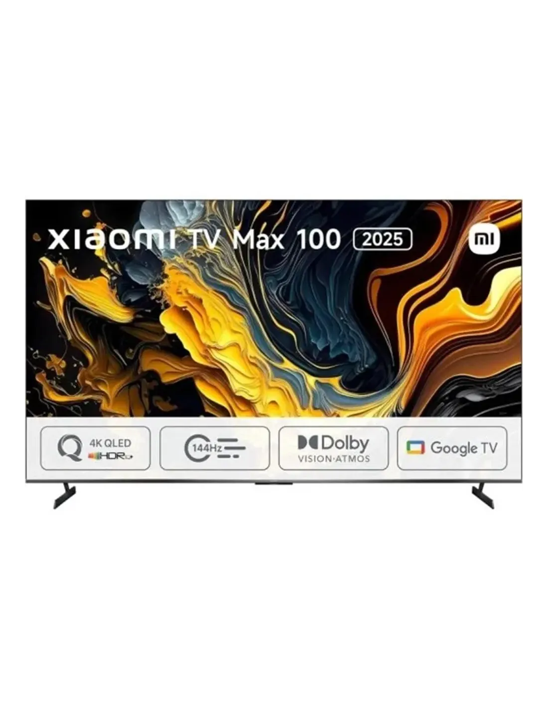 Características de la Xiaomi TV Max 2025 100" QLED UltraHD 4K Google TVLa Xiaomi TV Max 2025 redefine la experiencia de cine en casa con su pantalla QLED de 100" en resolución 4K Ultra HD y una tasa de refresco de hasta 144 Hz. Diseñada para quienes buscan lo máximo en calidad de imagen, sonido envolvente y funciones inteligentes, esta Smart TV integra tecnologías de vanguardia como Dolby Vision®, Dolby Atmos®, HDMI 2.1 y Google TV, todo ello enmarcado en un elegante diseño sin biseles y estructura metálica.Calidad de imagen QLED con 1.070 millones de coloresGracias a la tecnología de puntos cuánticos, esta TV alcanza una cobertura del 94% del espacio de color DCI-P3, ofreciendo colores intensos y precisos con un nivel de detalle sobresaliente. Su compatibilidad con HDR10+, HLG y Modo Filmmaker asegura una visualización cinematográfica adaptada a cada contenido.Resolución 4K Ultra HD (3840 x 2160 píxeles)Tecnología QLED con retroiluminación LEDFrecuencia nativa de 144 Hz + MEMC a 120 HzModo Filmmaker para respetar la intención del directorRendimiento fluido para gaming y acciónDiseñada para videojuegos y escenas de alta velocidad, incorpora HDMI 2.1, modo Game Boost a 240 Hz, AMD FreeSync? Premium y ALLM, reduciendo el input lag y asegurando transiciones suaves. Compatible con monitores eSports en cuanto a tiempo de respuesta.HDMI 2.1 + VRR (frecuencia de actualización variable)Modo automático de baja latencia (ALLM)Tiempo de respuesta de 4 msSonido envolvente con Dolby Atmos® y DTS:XLa experiencia sonora también está a la altura: la TV monta dos altavoces de 15 W y decodificación Dolby Atmos® y DTS:X, logrando un sonido tridimensional e inmersivo. Ideal para películas, conciertos o videojuegos.Potencia total de sonido: 30 W (2 x 15 W)Compatible con Dolby Atmos®, DTS:X y eARCSalida de audio digital óptica y salida para auricularesSmart TV con Google TV y control por vozCon Google TV como sistema operativo, accede a todo tu contenido favorito organizado por preferencias. Integra Asistente de Google, Chromecast, Apple AirPlay 2 y control desde el Xiaomi Watch 2. Compatible con miles de apps, canales en vivo y funciones inteligentes.Google TV con acceso a apps, películas, series y juegosAsistente de Google con control por vozChromecast integrado, AirPlay 2, MiracastProcesador rápido y gran almacenamiento internoEquipada con un potente SoC Quad-Core Cortex A73, esta TV optimiza el rendimiento con IA y ofrece una experiencia fluida graciasa sus 3 GB de RAM y 32 GB de almacenamiento. Además, incluye Wi-Fi 6 para una conexión rápida y estable.Procesador Quad-Core Cortex A733 GB de RAM + 32 GB de memoria internaWi-Fi 6 y Bluetooth 5.2Diseño inmersivo y gran formatoCon su diseño sin biseles y acabado metálico, la Xiaomi TV Max 2025 luce imponente en cualquier espacio. Su pantalla de 100 pulgadas transforma tu salón en una auténtica sala de cine.Montaje VESA 700 x 400 mmDimensiones con soporte: 2229 x 1344 x 473 mmPeso con soporte: 59,6 kgOtras especificacionesTipo de pantalla: PlanaFormatos de vídeo soportados: 2160pFormatos gráficos: 3840 x 2160Ángulos de visión: 178° horizontal y verticalSintonizador: DVB-C, DVB-S2, DVB-T2Consumo energético: 450 WPuertos: 3 HDMI (2.1), 2 USB (1x 2.0 + 1x 3.2), LAN, salida óptica, jack auricularesCompatible con CI+ y gestión mediante mando Bluetooth
