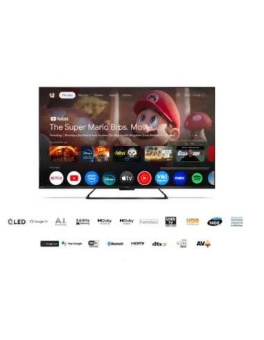 Televisor 4K Ultra HD Google TV™ QLED - rica gama cromática HDMI con eARC, VRR y ALLM Dolby Vision IQ™ - HDR inspirado en el cine con ajuste del brillo de la habitación Dolby Atmos® - Experiencia de sonido completamente envolvente Códec de audio envolvente DTS:X Posprocesamiento de audio 3D DTS Virtual:X Procesador de vídeo UltraClear con Inteligencia Artificial AQUOS Smooth Motion 144 Hz - Tecnología de interpolación de fotogramas Sensor de luz con OPC (Control óptico de imágenes) Mejore la experiencia de juego con la nueva capacidad de frecuencia de refresco de 120/144 Hz y la función VRR de HDMI . Libera todo el potencial de tu televisor con aventuras de juego. Prepárate para conquistar nuevas cotas de juego con Dolby Vision y Dolby Atmos para disfrutar de un compromiso visual y sonoro con el juego. El entretenimiento que te gusta. Con un poco de ayuda de Google. Google TV reúne películas, programas y mucho más de todas tus aplicaciones y suscripciones y los organiza solo para ti.