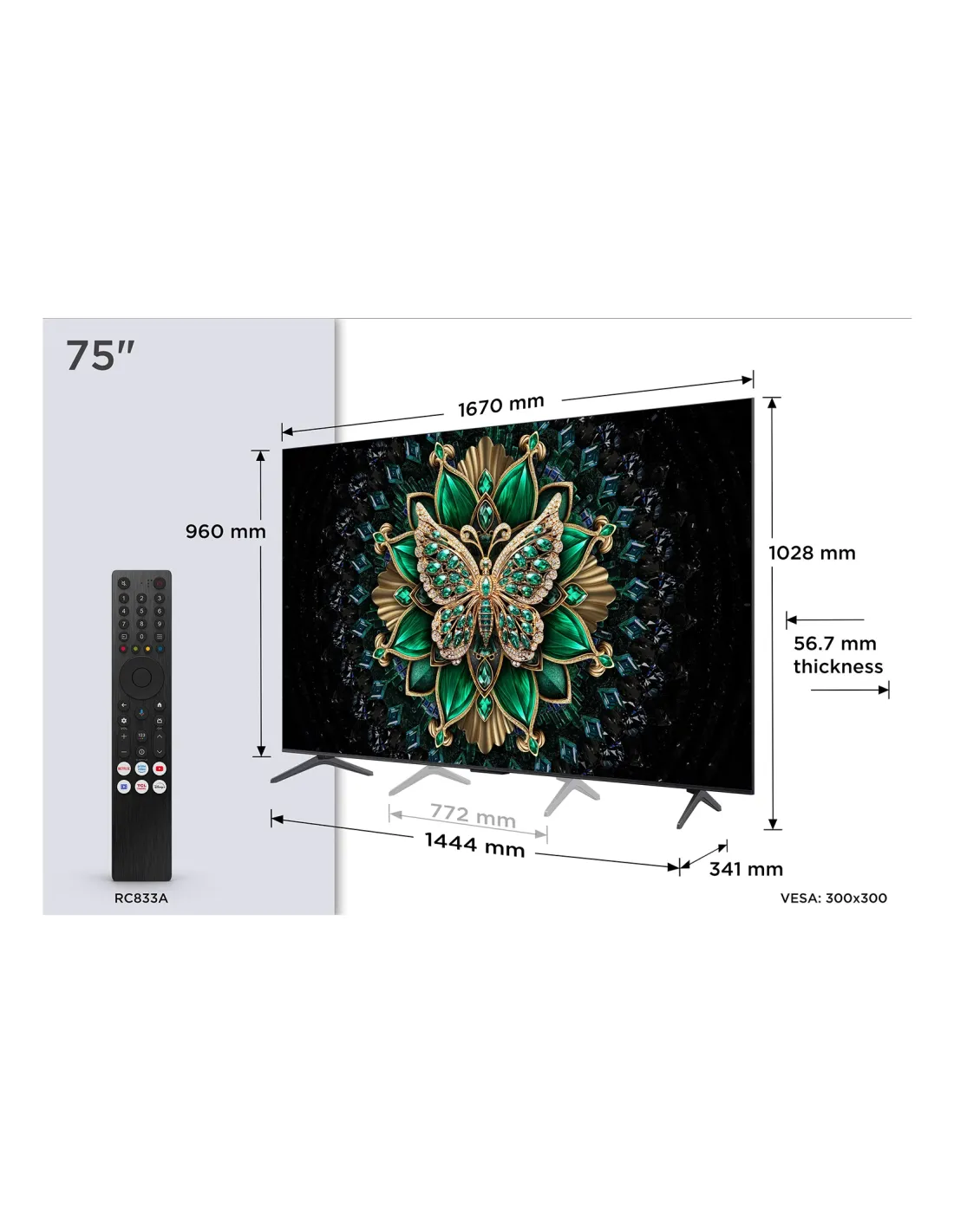 TCL C6K 75C6K, 190,5 cm (75"), 3840 x 2160 Pixeles, QD-Mini LED, Smart TV, Wifi, Metálico