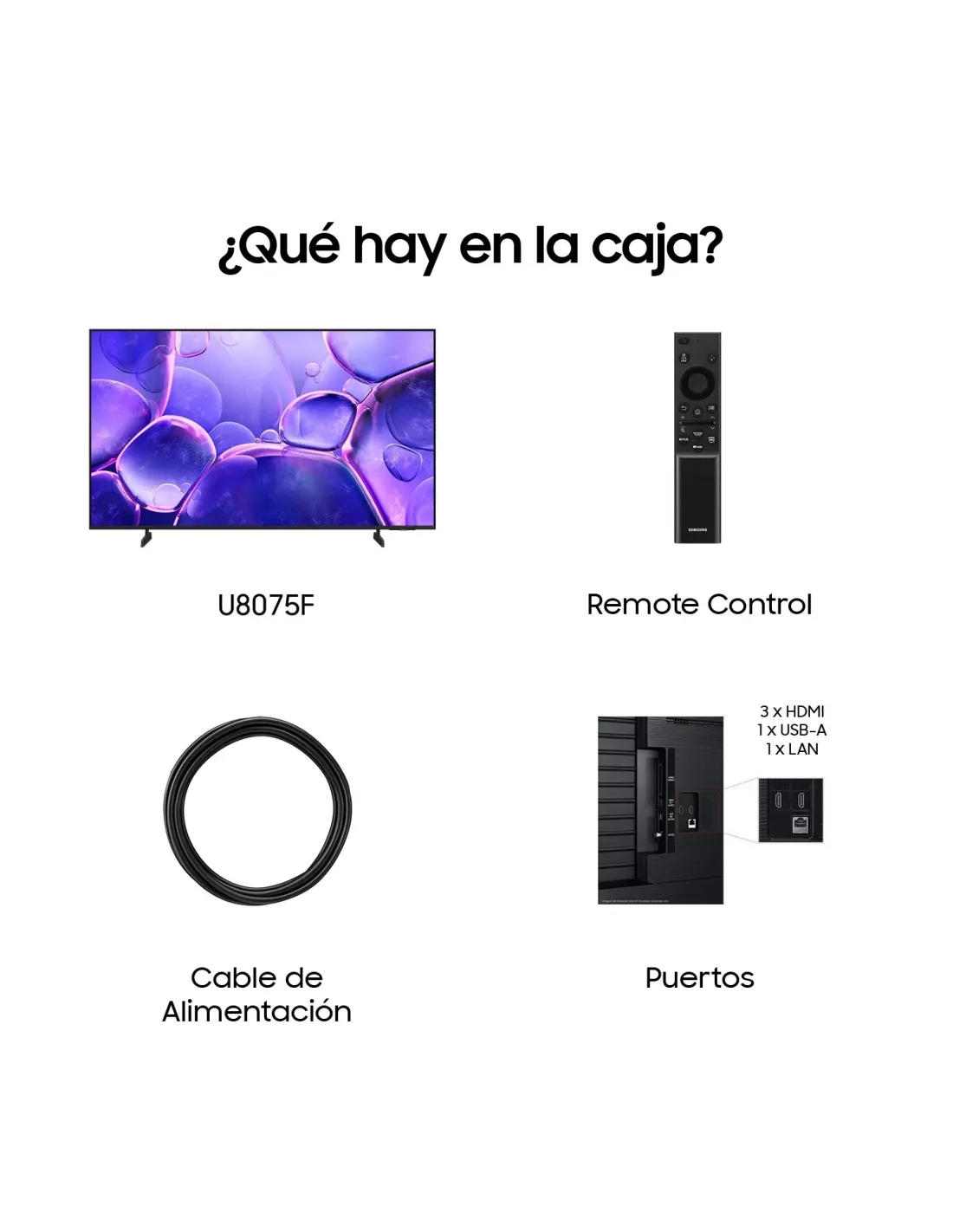 Samsung TV 75" Crystal UHD U8075F 4K Smart TV 2025, 190,5 cm (75"), 3840 x 2160 Pixeles, LED, Smart TV, Wifi, Negro