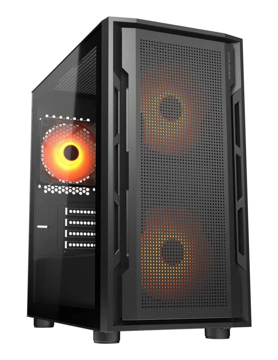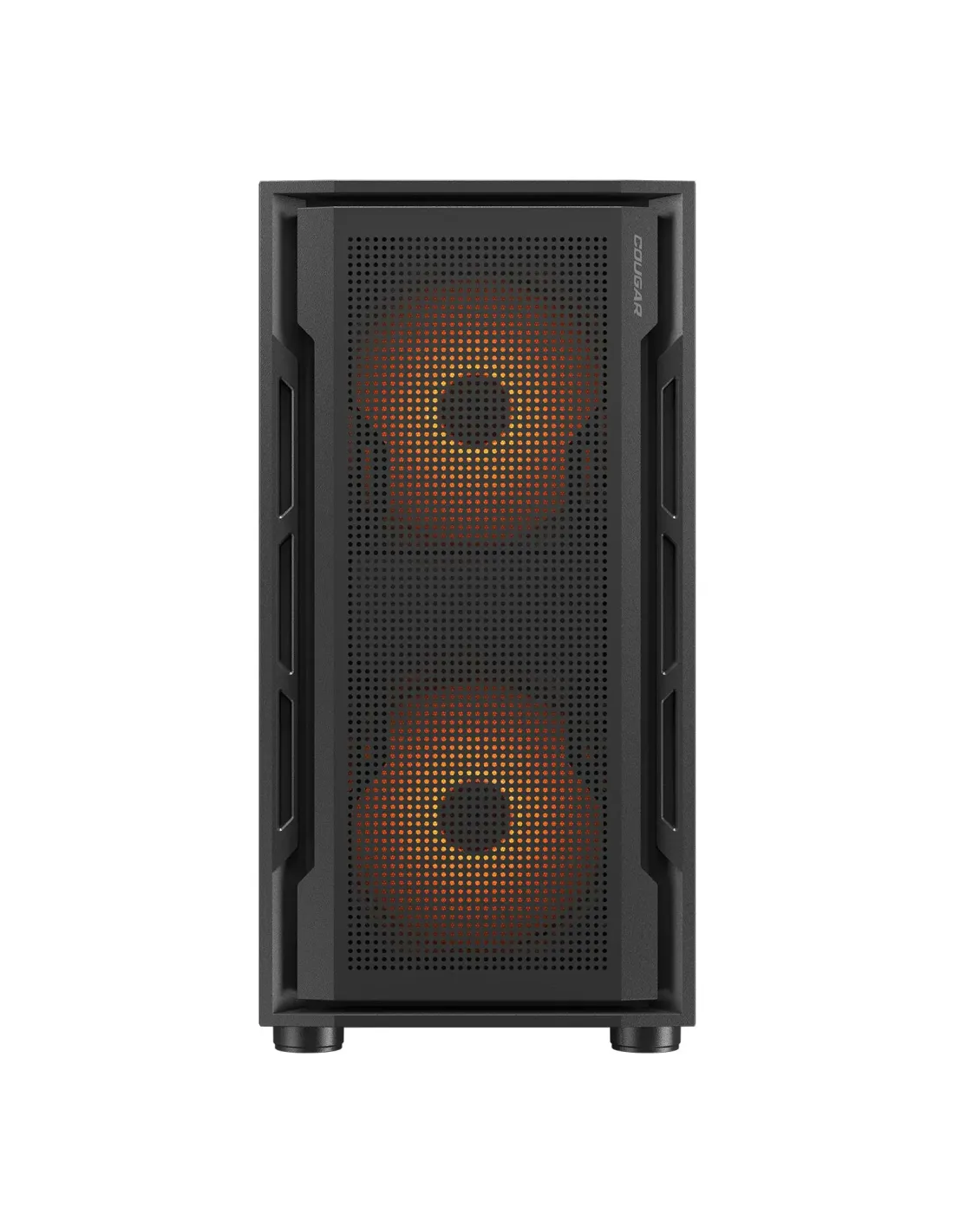 El panel de ventilación frontal perforado es una declaración de la identidad visual distintiva de COUGAR, integrando un diseño minimalista y un rendimiento de enfriamiento excepcional.