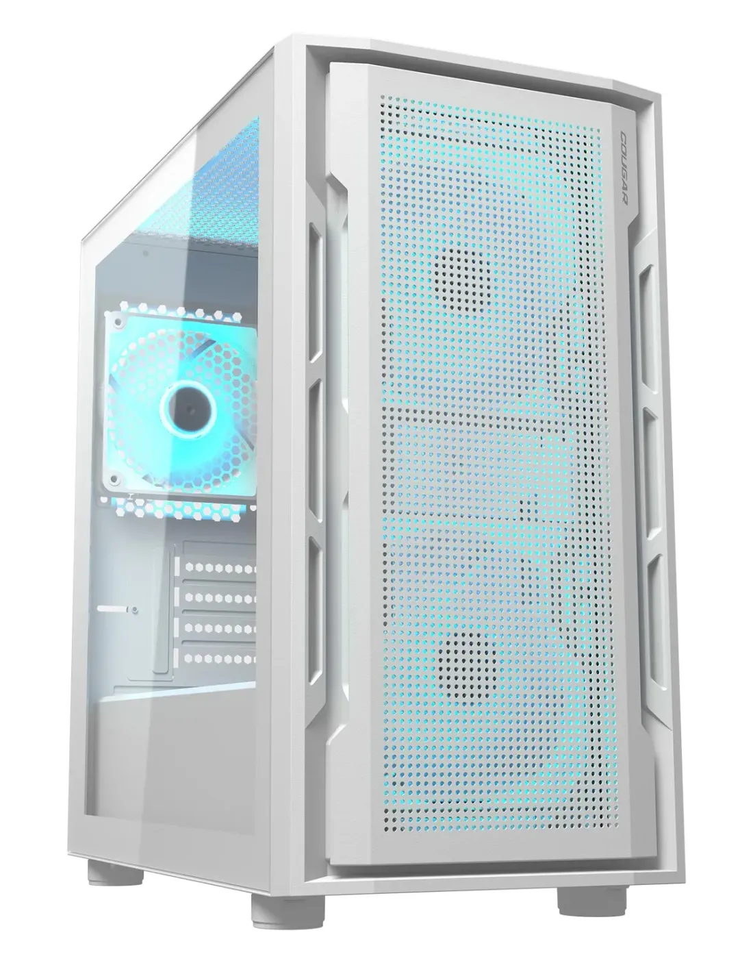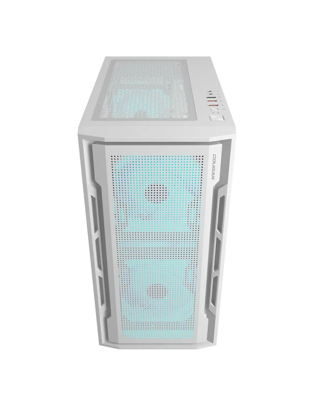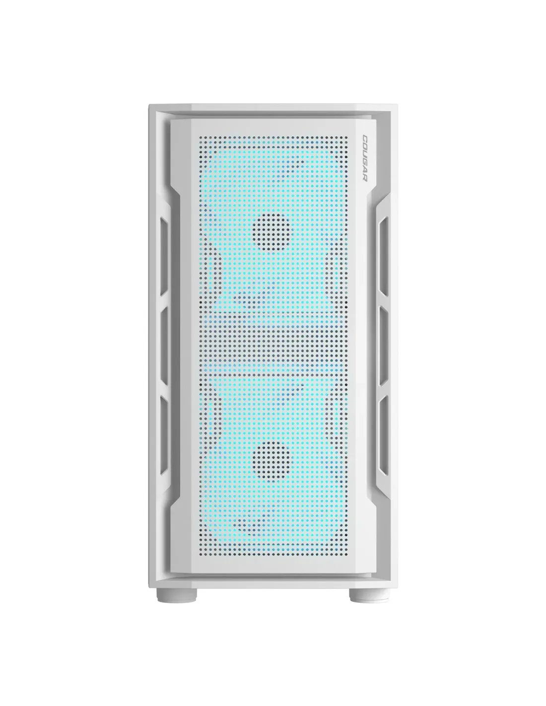 El panel de ventilación frontal perforado es una declaración de la identidad visual distintiva de COUGAR, integrando un diseño minimalista y un rendimiento de enfriamiento excepcional.
