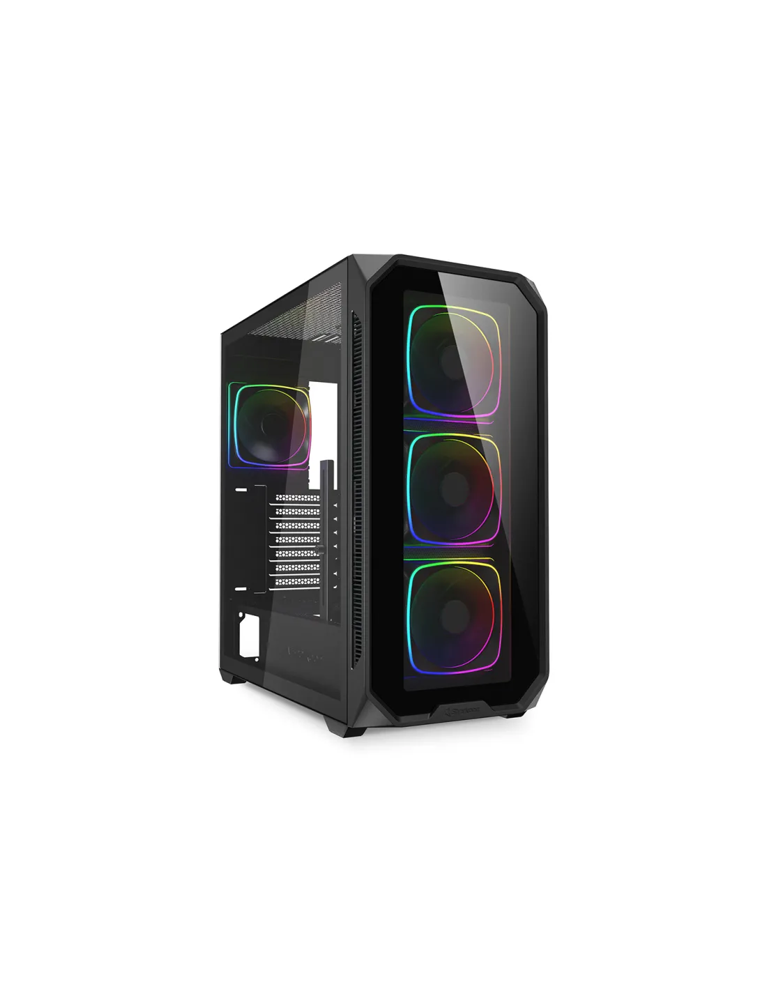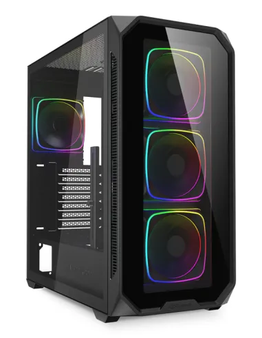 Con su aspecto futurista, incluido el panel lateral y frontal de cristal templado, la AK5G RGB es el hogar definitivo para el hardware de gama alta que hay que ver. El interior de esta caja ATX tiene un diseño espacioso y ofrece espacio para hasta once ventiladores o dos radiadores. Además, las modernas conexiones de entrada-salida y la compatibilidad con las nuevas placas base BTF garantizan que la caja esté preparada para el futuro.Aspecto futuristaCon su llamativo panel frontal y su panel lateral de cristal templado, la AK5G RGB es ideal como escaparate para un hardware impresionante.Cuatro Ventiladores PreinstaladosCuatro ventiladores PWM RGB de 120 mm están preinstalados en el AK5G RGB, y cada ventilador tiene tres filas de iluminación LED envolvente para proporcionar llamativos reflejos. Hasta once ventiladores encontrarán espacio en la caja.Soporte de Radiador DualSi prefiere la refrigeración por agua a la refrigeración por aire, la AK5G RGB es exactamente lo que está buscando, ya que la caja permite el funcionamiento simultáneo de hasta dos radiadores de 360 mm.Compatible con Placas base BTFAparte de las placas base convencionales mini-ITX, micro-ATX y ATX, la AK5G RGB también es compatible con casi todos los formatos BTF del mercado.Conexiones idealesPara conectar una amplia gama de dispositivos móviles y periféricos, el AK5G RGB dispone de un moderno puerto TRRS y USB-C en la parte frontal del panel superior. Además, un controlador proporciona la conexión y el funcionamiento de hasta cuatro componentes LED RGB y cuatro ventiladores PWM.Espacioso diseño interiorCon un espacio disponible de hasta 41 cm, en el interior del AK5G RGB caben incluso tarjetas gráficas de gran tamaño. Además, se pueden instalar disipadores de CPU con una altura de hasta 17 cm, así como fuentes de alimentación con una longitud de hasta 23,5 cm. Instalación de hasta dos discos duros de 3,5" o cuatro unidades SSD de 2,5".