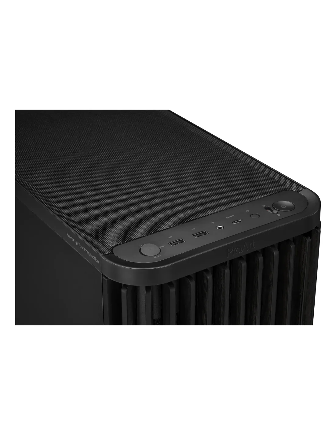 La ProArt PA401 Wood Edition presenta un panel frontal de madera que crea un estilo distintivo y elegante a la vez que promueve la sostenibilidad. La madera utilizada está certificada por el Consejo de Administración Forestal® (FSC®), y su acabado se realiza mediante un proceso de seis etapas. La carcasa también cuenta con una refrigeración integrada óptima, con dos ventiladores frontales de 160 mm y un ventilador trasero de 120 mm, junto con un concentrador de ventiladores integrado, que permite un flujo de aire óptimo.