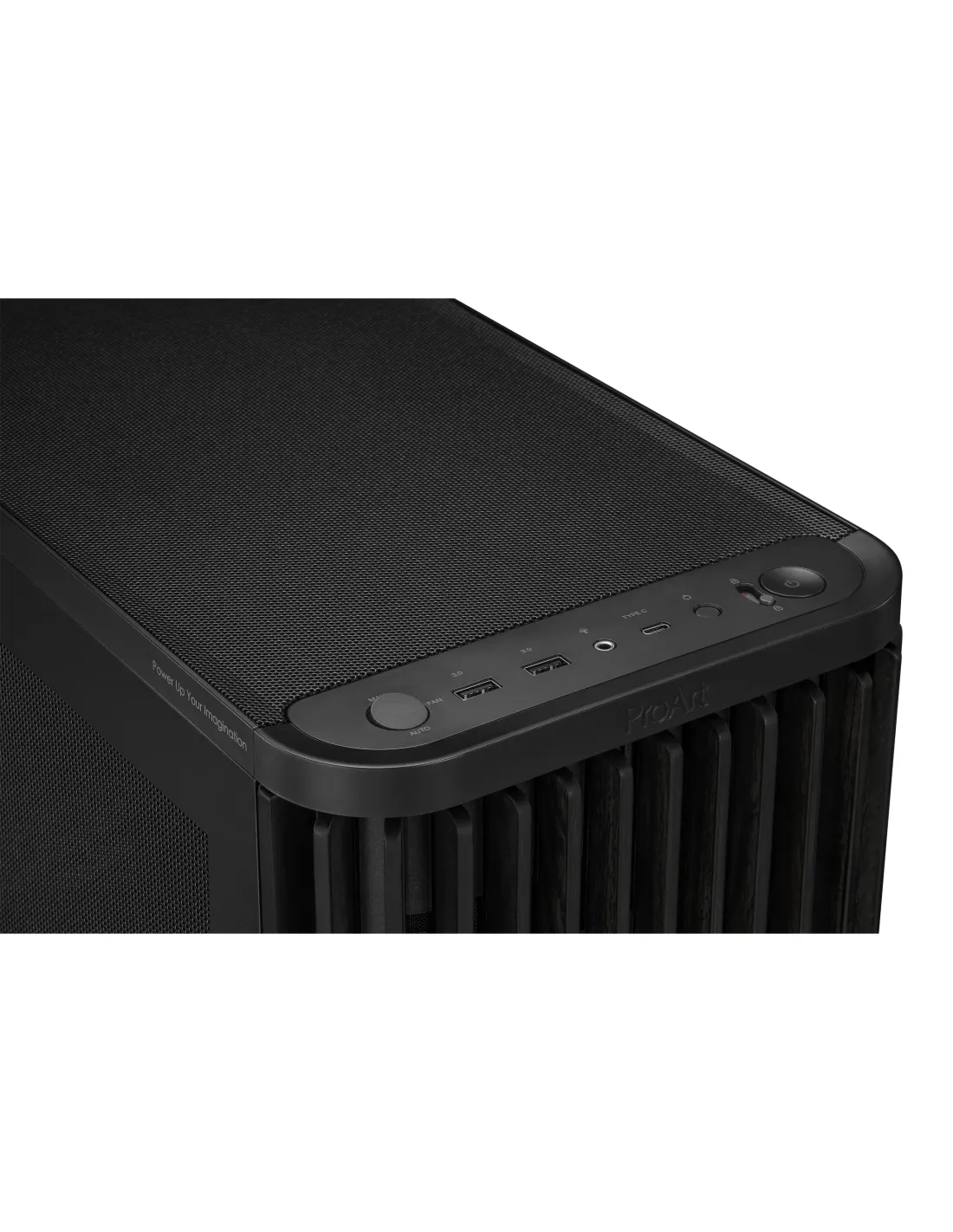 La ProArt PA401 Wood Edition presenta un panel frontal de madera que crea un estilo distintivo y elegante a la vez que promueve la sostenibilidad. La madera utilizada está certificada por el Consejo de Administración Forestal® (FSC®), y su acabado se realiza mediante un proceso de seis etapas. La carcasa también cuenta con una refrigeración integrada óptima, con dos ventiladores frontales de 160 mm y un ventilador trasero de 120 mm, junto con un concentrador de ventiladores integrado, que permite un flujo de aire óptimo.