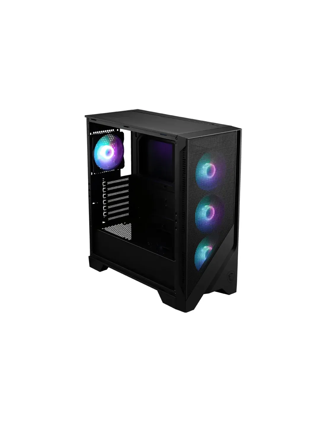 MSI MAG Forge 320R AIRFLOW. Factor de forma: Micro Torre, Tipo: PC, Color del producto: Negro, Transparente. Ubicación de fuente de alimentación: Fondo. Ventiladores frontales instalados: 3x 120 mm, Diámetro de ventiladores frontales soportados: 120,140 mm, Diámetro de ventiladores secundarios soportados: 120 mm. Tamaños de disco duro soportados: 2.5,3.5". Ancho: 472,5 mm, Profundidad: 210 mm, Altura: 498 mm