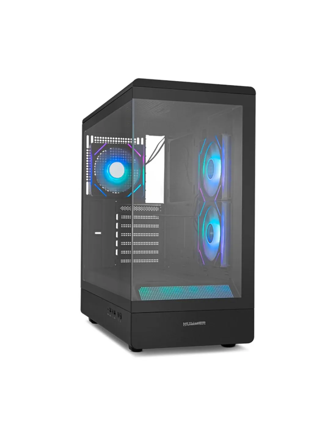 Gracias a su sistema ARGB multicolor, la Hummer Signal permite personalizar la iluminación interna según el estilo de cada usuario, ofreciendo un efecto visual impactante a través de su panel de vidrio templado.