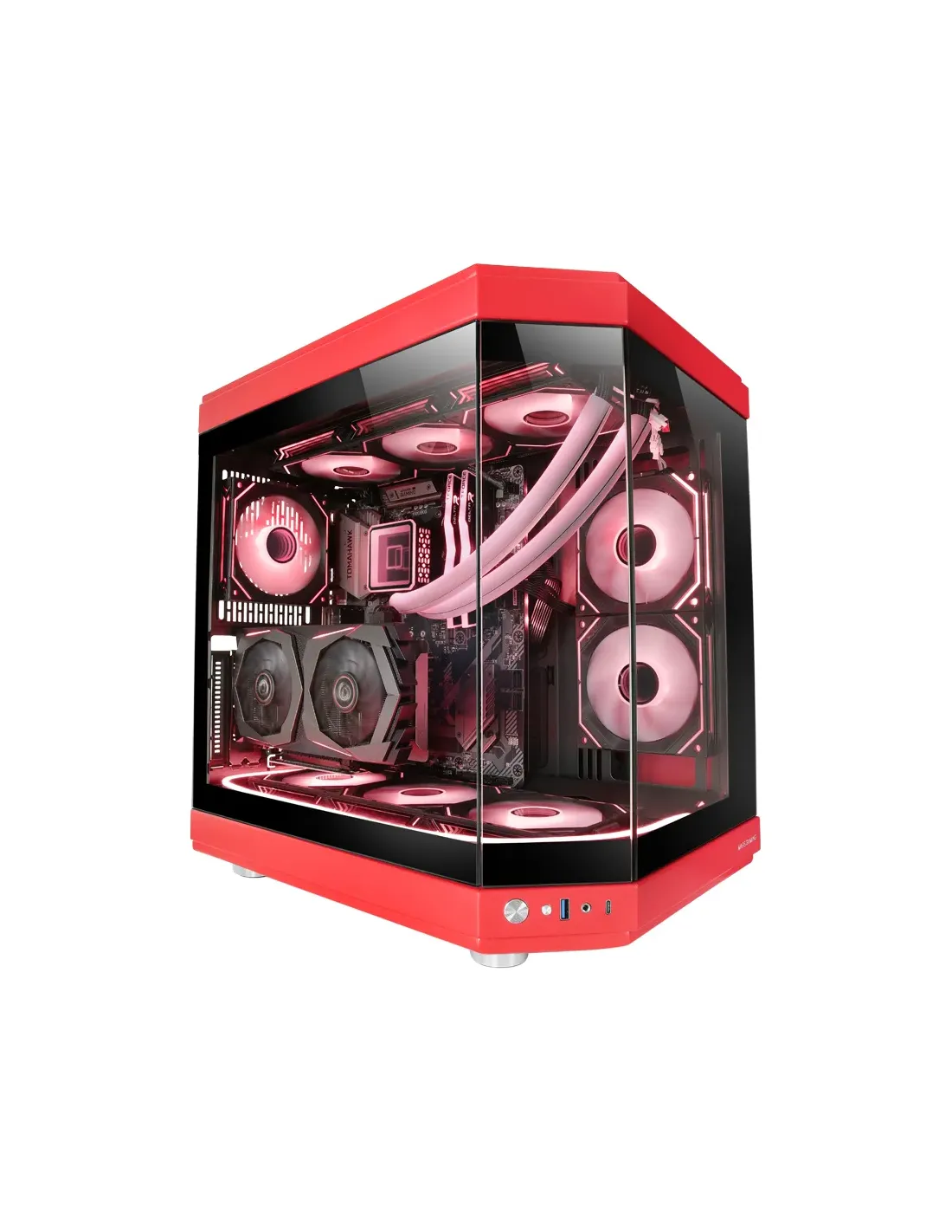 Sumérgete en una revolución de diseño con la MC-3T y su estructura de doble cámara lateral, maximizando cada centímetro de su espacio interno. La distribución inteligente de los componentes se traduce en una refrigeración excepcional, asegurando que tu sistema funcione a pleno rendimiento, incluso durante las sesiones más intensas.