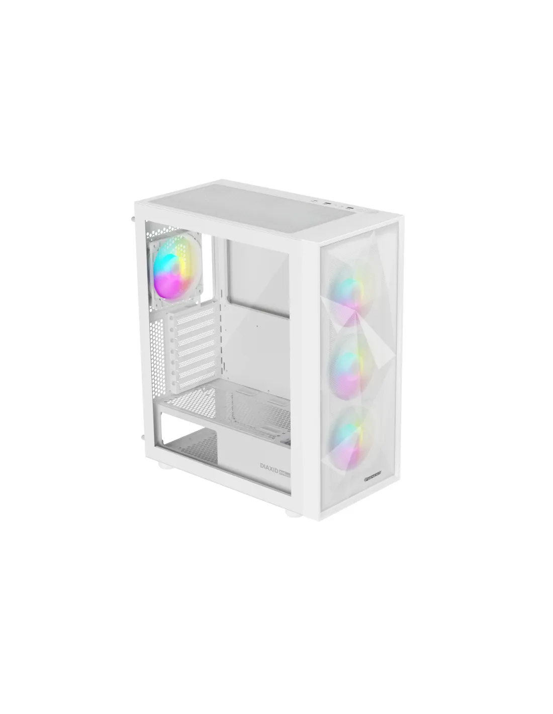 GENESIS Diaxid 605 ARGB. Factor de forma: Midi Tower, Tipo: PC, Color del producto: Blanco. Ubicación de fuente de alimentación: Fondo, Factores de forma de la fuente de alimentación compatibles: ATX. Ventiladores frontales instalados: 3x 120 mm, Diámetro de ventiladores frontales soportados: 120,140 mm, Ventiladores traseros instalados: 1x 120 mm. Tamaños de disco duro soportados: 2.5,3.5". Ancho: 217 mm, Profundidad: 420 mm, Altura: 466 mm