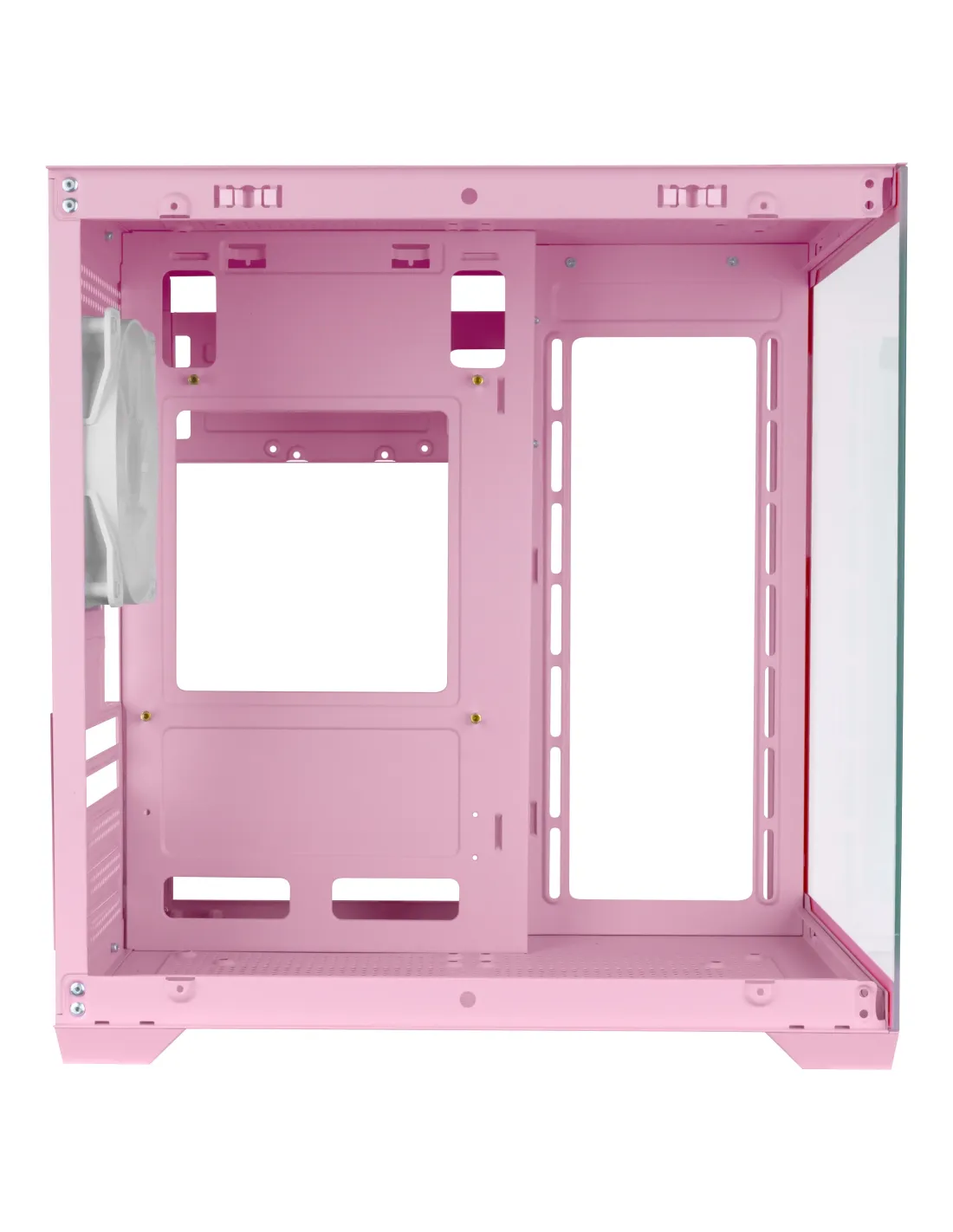 Mars Gaming MC-VIEW2P. Factor de forma: Mini Tower, Tipo: PC, Color del producto: Rosa. Ubicación de fuente de alimentación: Lado, Factores de forma de la fuente de alimentación compatibles: ATX. Diámetro de ventiladores secundarios soportados: 120,140 mm, Ventiladores traseros instalados: 1x 120 mm, Diámetro de ventiladores traseros soportados: 120 mm. Tamaños de disco duro soportados: 2.5,3.5". Ancho: 277 mm, Profundidad: 345 mm, Altura: 355 mm