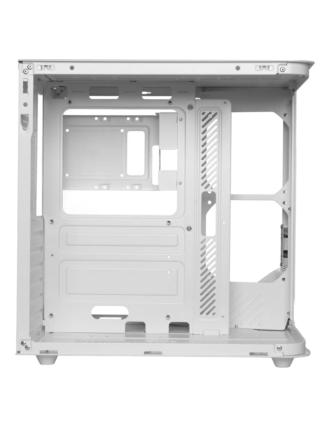 Gracias a su diseño interno de doble cámara, separa la fuente de alimentación y el almacenamiento del resto del equipo, mejorando la ventilación, simplificando la organización del cableado y aportando una estética interna más limpia y profesional.