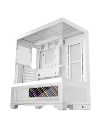 El panel inferior FULL MESH maximiza la refrigeración desde la base del equipo, optimizando el flujo interno y mejorando la eficiencia térmica de tu configuración. Un diseño pensado para reforzar la ventilación sin sacrificar la estética moderna de la caja.