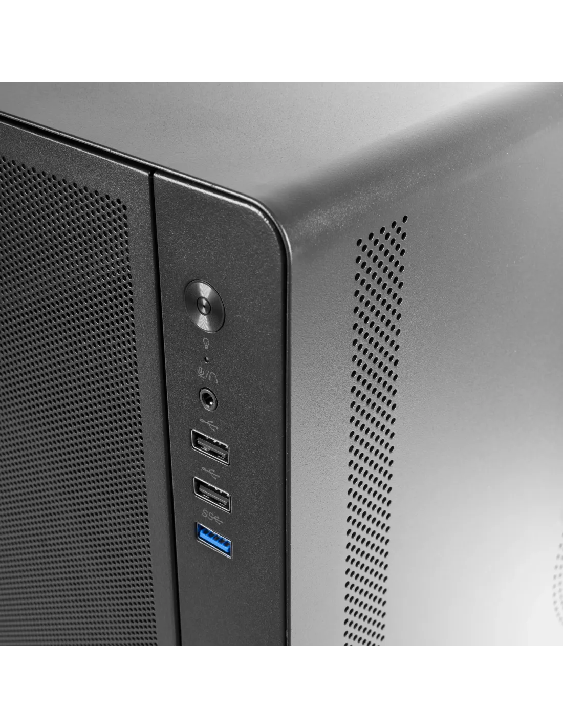 La caja AERO destaca por su construcción totalmente metálica que garantiza máxima resistencia y durabilidad. Su diseño elegante con líneas modernas y rejilla frontal optimizada no solo ofrece un aspecto sofisticado, sino que también mejora el flujo de aire interno, asegurando un rendimiento térmico eficiente.