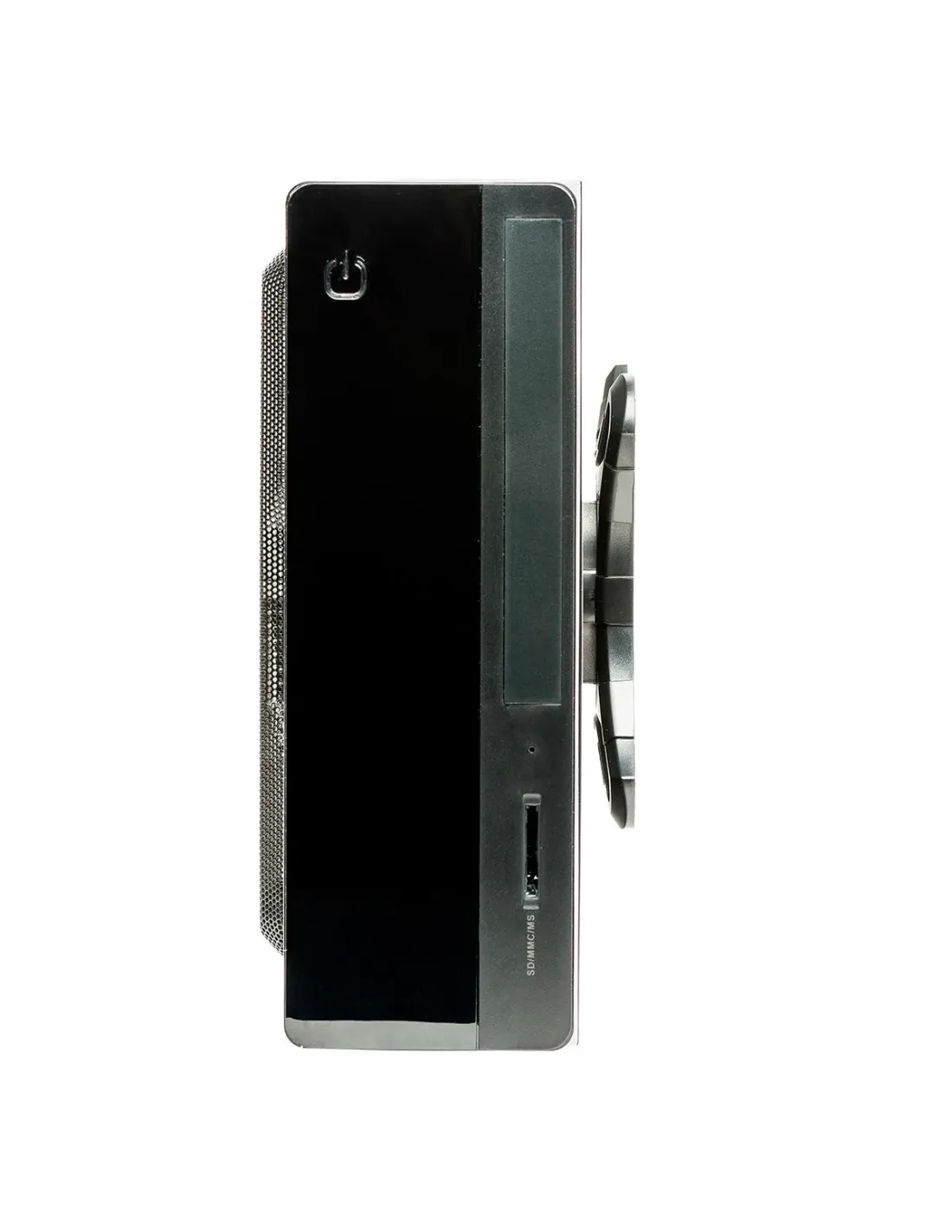 El modelo 1007 es una caja con formato sobremesa, que destaca por su diseño moderno, con un frontal negro brillante y una luz azul intenso, que informa sobre su actividad. Su estructura y dimensiones la hacen muy versátil, ya que se puede colocar en posición horizontal o vertical, manteniendo su estabilidad mediante el soporte VESA que incluye.