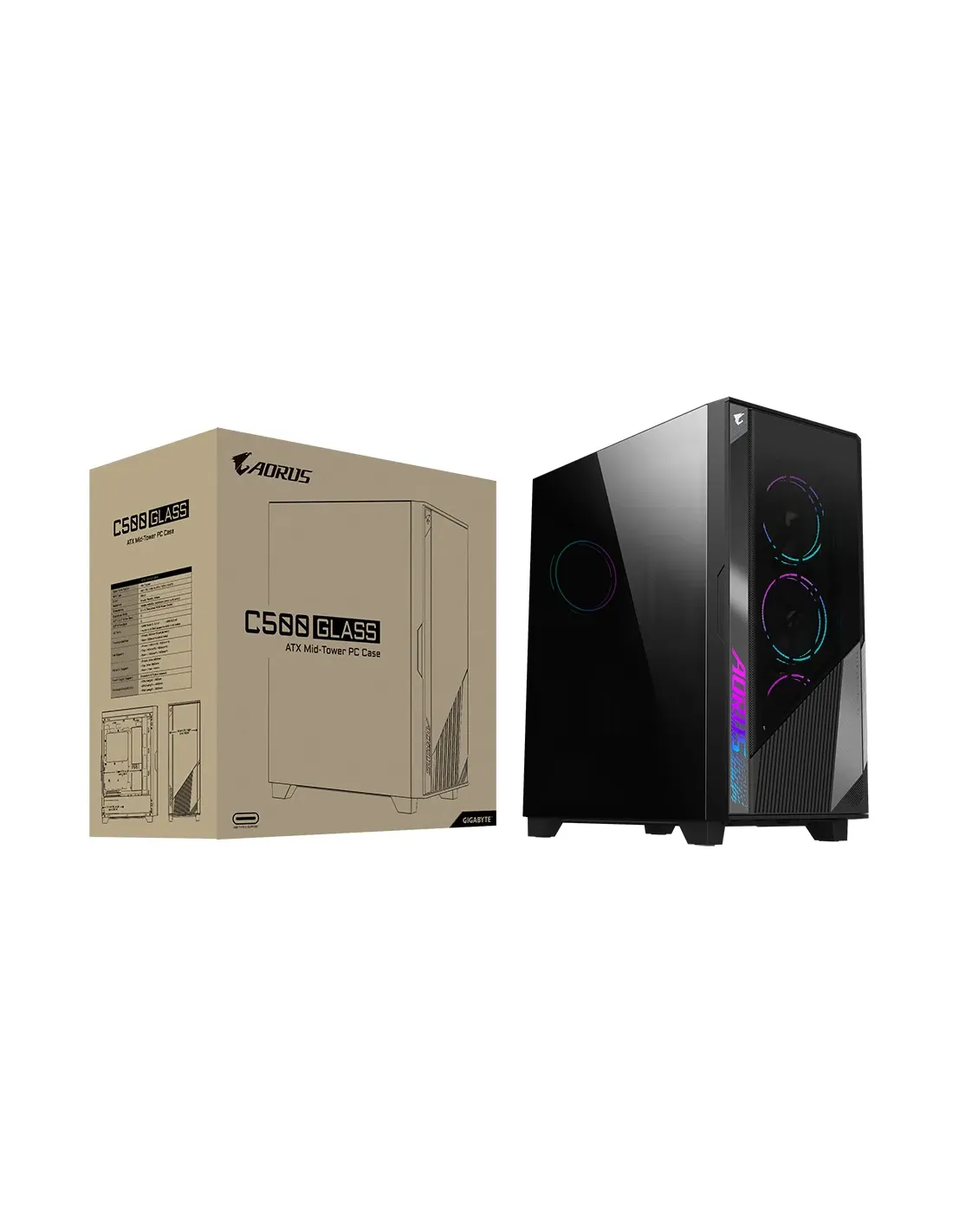 GIGABYTE GB-AC500G ST. Factor de forma: Midi Tower, Tipo: PC, Color del producto: Negro. Ubicación de fuente de alimentación: Fondo, Factores de forma de la fuente de alimentación compatibles: ATX. Ventiladores frontales instalados: 3x 120 mm, Diámetro de ventiladores frontales soportados: 120,140 mm, Ventiladores traseros instalados: 1x 120 mm. Tamaños de disco duro soportados: 2.5,3.5". Ancho: 250 mm, Profundidad: 482 mm, Altura: 548 mm