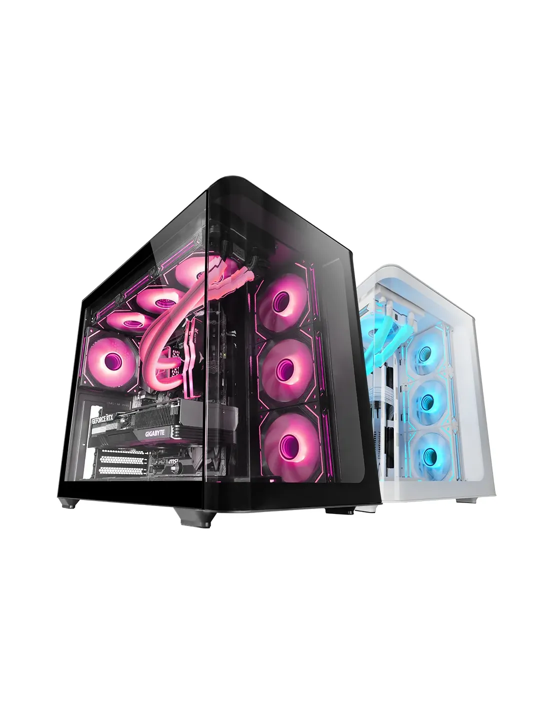 Mars Gaming MC-FUSION, Caja Gaming ATX, Ventana Lateral Completa y Frontal Curvo Cristal Templado Continuo, Semitorre PC Doble Cámara, Soporte Refrigeración Líquida, Espacio Interno Optimizado, Negro, Midi Tower, PC, Negro, ATX, micro ATX, Mini-ITX, 16 cm, 44,5 cm