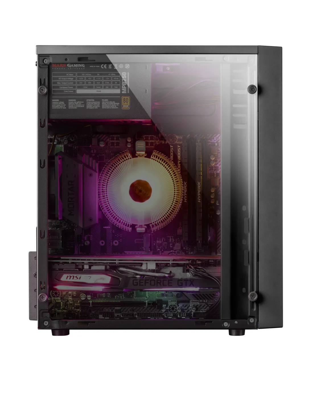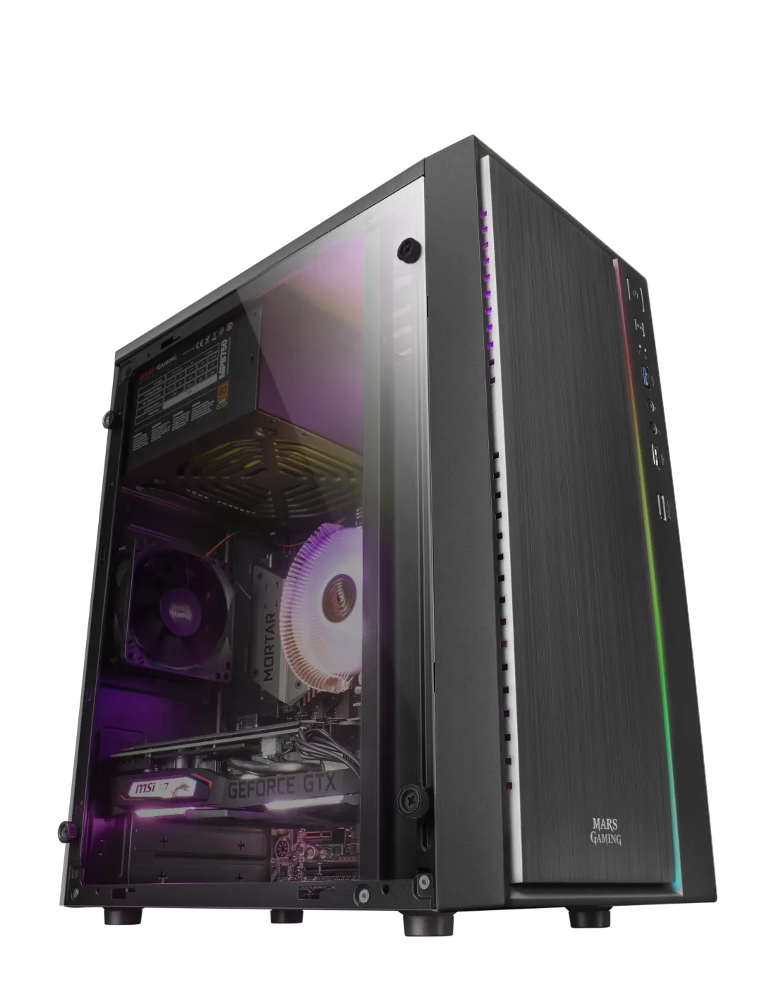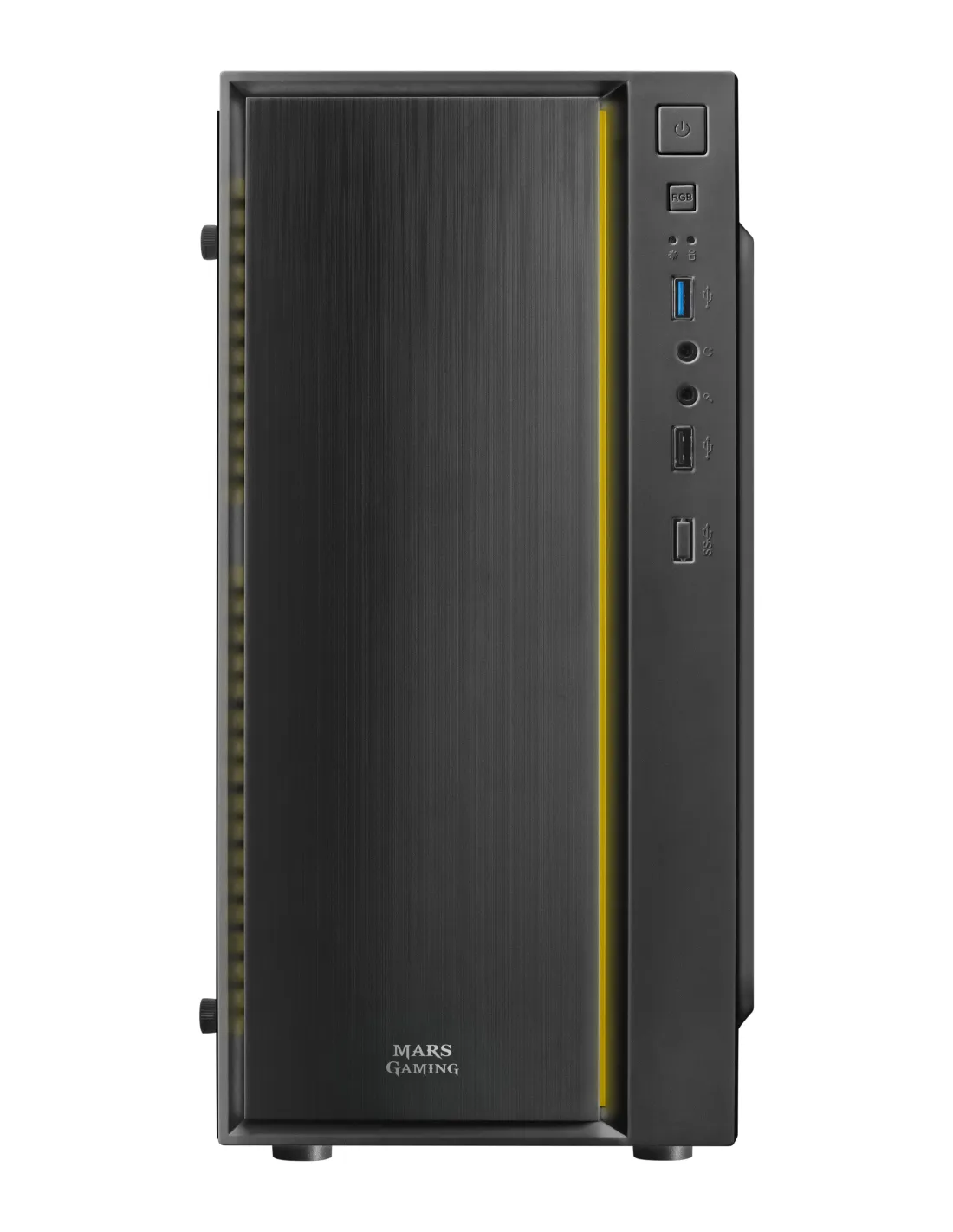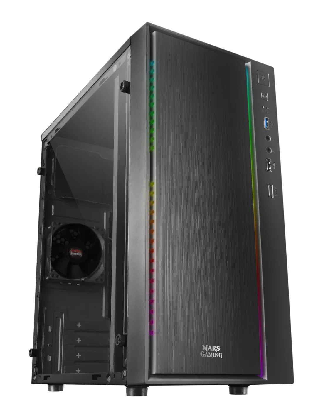 La MCM es una caja gaming compacta de diseño profesional microATX /mini-ITX con el espacio necesario para los componentes que necesitas,potenciada gracias a un increíble frontal de tipo aluminio pulido coniluminación LED RGB Control: las mejores prestaciones gamingconcentradas en una estructura sólida, moderna y resistente.CaracterísticasEstilo y rendimiento. Una estructura diseñada para ofrecerte lasmejores prestaciones y el mejor estilo:Tamaño ultra compacto Micro ATX.Ventana lateral total.16 modos de iluminación RGB Control.Diseño compacto, ligero y potente. Con una estructura optimizadapara conseguir el equilibrio perfecto entre componentes de alta gama yun excepcional ahorro de espacio en tu setup, la MCM ofrece una cajacompacta, ligera y resistente, con un frontal de tipo aluminio pulidopotenciada con una franja de iluminación LED RGB y hasta 16 modosúnicos.Iluminación LED RGB Control. El frontal de la caja MCM destaca por unafranja LED RGB en la parte derecha, con una potente iluminación demúltiples efectos y fácilmente controlable a través de un botón LEDubicado en el panel delantero.Hasta 16 modos de iluminación. Disfruta de hasta 16 modos deiluminación, incluyendo transiciones dinámicas y colores estáticos, paraconseguir el mejor aspecto y diseñar tu setup como más te guste.Ventana lateral total. La caja MCM ofrece un diseño minimalista yelegante, combinando su frontal de tipo aluminio pulido con una ventanalateral total que deja ver el interior a la perfección para sacar el máximopartido a la iluminación de tus componentes. Desde tarjetas RAM RGBhasta procesadores con iluminación RGB Addressable, podrás construirtu propio PC de alta gama con una estética gaming inimitable.Espacio optimizado. Ahorra espacio en tu setup y no pierdas laoportunidad de instalar los componentes más avanzados para tuordenador: la caja MCM dispone de una estructura compacta consoporte y espacio optimizados para las piezas que quieras. Disponeademás de soporte para 2 discos SSDs y 2 HDDs para un amplioalmacenamiento de datos y el mejor rendimiento a la hora de jugar.Acceso multimedia. La MCM cuenta con un panel delantero de accesorápido, con puerto USB 3.0 y 2.0, y puertos de Audio & Micrófono HD paraconectar tus cascos y disfrutar de tus partidas online cómodamente.Conecta tus dispositivos de almacenamiento, periféricos y accesoriosfácilmente a la parte delantera del PC y no pierdas ni un segundo dejuego.Especificaciones Mars Gaming MCMDiseñoFactor de forma: Mini-TorreTipo: PCColor del producto: NegroFormas de factor de tarjeta madre soportadas: Micro ATX, Mini-ITXNúmero de puertos 3.5": 2Número de bahías 2.5": 2Número de ranuras de expansión: 4Ventana lateral: SiIluminación: SiIluminación de color: Rojo/Verde/AzulAltura máxima disipador CPU: 143 mmMáxima longitud de la tarjeta gráfica: 269 mmFuente de alimentaciónFuente de alimentación incluida: NoPuertos e InterfacesEntrada de audio: SiSalida de audio: SiCantidad de puertos USB 2.0: 1Cantidad de puertos tipo A USB 3.2 Gen 1 (3.1 Gen 1): 1EnfriamientoVentiladores traseros instalados: 1x 80 mmMedios de almacenajeTamaños de disco duro soportados: 2.5", 3.5"Peso y dimensionesAncho: 185 mmProfundidad: 308 mmAltura: 360 mmPeso: 1,91 kg