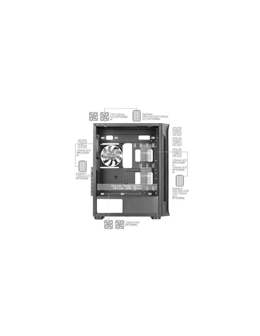 TORRE GAMING PREMIUM MC-NEOExclusivo sistema de refrigeración CPU FREEZER. 4 ventiladores ARGB y un ventilador lateral para CPU ultra-silenciosos. Estructura XXL E-ATX con bahías VGA verticales, ventana lateral y frontal en cristal templado,soporte para hasta 9 ventiladores de 120mm o 5 ventiladores de 140mm y soporte para líquidas de hasta 360 y 280mm.REFRIGERACIÓN MÁXIMAUn flujo de aire constante es la clave para extender la vida útil de tus componentes y hacer que tu sistema funcione a pleno rendimiento. La MC-NEO elimina todo problema de temperatura manteniendo el silencio graciasal enorme flujo de aire de sus 5 ventiladores y su exclusivo sistema CPU FREEZER. Además, ofrece soporte total para refrigeración líquida incluyendo sistemas extra-grandes con radiadores de 360 o 280mm.NEGRO O BLANCODisponible en dos acabados, blanco y negro. ¡Escoge el que mejor se adapte a tu setup!SISTEMA CPU FREEZERInnovador y eficiente sistema de refrigeración con un ventilador dedicado a la zona más caliente de tu PC: el microprocesador y su zona en la placa base. Gracias al sistema CPU FREEZER conseguirás mantener a raya latemperatura de tu procesador y placa base para maximizar el rendimiento.Nota: El sistema CPU freezer podría no ser compatible con algunos backplates de disipadores CPU en placas base Intel.CAPACIDAD INTERNA SUPERIOR XXL E-ATXLa torre MC-NEO ofrece un enorme espacio interno para la instalación de componentes de alto rendimiento, ofreciendo soporte para placas E-ATX, ATX, micro-ATX y mini-ITX, ranuras verticales, soporte para 2 HDDs de 3.5"y 4 SSDs de 2.5, capacidad para hasta 9 ventiladores de 120mm o 5 ventiladores de 140mm y refrigeraciones líquidas de hasta 360 o 280mm para mantener la temperatura bajo control en todo momento.ESCAPARATE ESPECTACULARDotada de una ventana frontal y lateral completa de cristal templado y dos ranuras verticales para tarjeta gráfica*, la caja MC-NEO permite mostrar tu PC en todo su esplendor. Tanto el panel frontal como la ventana lateralen cristal templado de la caja MC-NEO ofrecen una experiencia visual espectacular gracias a la iluminación de los 4 ventiladores ARGB incluidos de 120mm con diferentes efectos de iluminación predeterminadoscontrolables mediante el botón integrado y a la visualización del hardware de tu PC.*Nota: Cable VGA riser no incluidoILUMINACIÓN FUTURISTA DUAL RING ARGBVentiladores de diseño futurista con iluminación DUAL RING ARGB e iluminación interior y exterior. Rendimiento de refrigeración extrema con un ruido mínimo gracias a su exclusivo diseño de aspas aerodinámicas,rodamientos FDB de larga vida útil y baja fricción y juntas de goma antivi-braciones.Mars Gaming MC-NEO Blanco Torre Gaming XXL E-ATX Ventana Lateral y Frontal Cristal Templado 4x Ventiladores ARGB 120mm + Ventilador 120mm Sistema CPU Freezer. Factor de forma: Torre, Tipo: PC, Color delproducto: Blanco. Factores de forma de la fuente de alimentación compatibles: ATX. Ventiladores frontales instalados: 3x 120 mm, Diámetro de ventiladores frontales soportados: 120,140 mm, Ventiladores lateralesinstalados: 1x 120 mm. Tamaños de disco duro soportados: 3.5", Factor de forma de disco SSD: 2.5". Ancho: 215 mm, Profundidad: 405 mm, Altura: 470 mmDiseñoFactor de forma TorreTipo PCColor del producto BlancoFormas de factor de tarjeta madre soportadas ATX, micro ATX, Mini-ITX, EATXNúmero de puertos 3.5" 2Número de bahías 2.5'' 4Número de ranuras de expansión 9Ventana lateral SiAdecuado para JuegoIluminación SiIluminación de color Verde, Rojo, AzulPanel(es) de vidrio templado SiGestión de cables SiAltura máxima de la CPU más fresco 16 cmMáxima longitud de la tarjeta de gráficos 34,8 cmFuente de alimentaciónFuente de alimentación incluida NoFactores de forma de la fuente de alimentación compatibles ATXPuertos e InterfacesCantidad de puertos USB 2.0 2Cantidad de puertos tipo A USB 3.2 Gen 1 (3.1 Gen 1) 1Entrada de audio SiSalida de audio SiEnfriamientoVentiladores frontales instalados 3x 120 mmNúmero de ventiladores frontales soportados (max.) 3Diámetro de ventiladores frontales soportados 120,140 mmVentiladores laterales instalados 1x 120 mmDiámetro de ventiladores secundarios soportados 120 mmVentiladores traseros instalados 1x 120 mmDiámetro de ventiladores traseros soportados 120 mmCapacidad de enfriamiento líquido SiTamaños compatibles con el radiador frontal 140,360,120,280 mmTamaños compatibles con el radiador trasero 120 mmTamaños compatibles con el radiador superior 120,240,140,280 mmMedios de almacenajeTamaños de disco duro soportados 3.5"Factor de forma de disco SSD 2.5"Peso y dimensionesAncho 215 mmProfundidad 405 mmAltura 470 mmPeso 6,37 kgEmpaquetadoAncho del paquete 268 mmProfundidad del paquete 456 mmAltura del paquete 532 mm