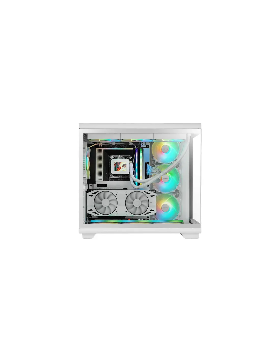 Características de la Caja ATX Semitorre Gaming Mars Gaming MCREV BlancaLa Mars Gaming MCREV Blanca es una caja semitorre de alto rendimiento, diseñada para entusiastas del gaming y el modding que buscan el máximo impacto visual y una refrigeración avanzada. Con un diseño innovador de flujo de aire invertido, paneles de cristal templado y soporte para hardware de grandes dimensiones, ofrece una base ideal para configuraciones exigentes y personalizadas.Flujo de aire invertido con 4 ventiladores ARGB incluidosIncorpora un diseño de ventilación invertida que impulsa el aire directamente hacia la GPU, eliminando puntos calientes y mejorando el rendimiento térmico. Viene equipada con 4 ventiladores ARGB FX de 120 mm de doble anillo, preinstalados (3 laterales + 1 trasero), que combinan un potente flujo de aire con una iluminación vibrante y personalizable.Diseño de refrigeración invertida optimizado4 ventiladores ARGB FX incluidosCompatibilidad con placas base ARGB de 3 pines +5VDiseño panorámico en cristal templadoDisfruta de una visión de 270° de todos los componentes internos gracias a su panel de cristal templado continuo en el frontal y lateral. Este diseño permite exhibir tanto el hardware como la iluminación RGB en todo su esplendor.Panel frontal y lateral en cristal templado de 4 mmAlta resistencia y visibilidad totalIdeal para configuraciones con alto impacto visualMáxima capacidad de refrigeraciónDiseñada para los sistemas más exigentes, permite instalar hasta 10 ventiladores de 120 mm y es compatible con radiadores de refrigeración líquida de hasta 360 mm en la parte superior e inferior. Incluye filtros antipolvo magnéticos en las zonas clave para una mayor limpieza y mantenimiento.Soporta hasta 10 ventiladores de 120 mmCompatible con refrigeración líquida de hasta 360 mm (superior/inferior)Filtros antipolvo magnéticos superior e inferiorEstructura de doble cámara y gestión de cablesSu diseño interno de doble cámara separa la fuente de alimentación y el cableado del resto de componentes, lo que permite una mejor gestión del espacio y mejora el flujo de aire dentro del chasis.Distribución interna optimizadaGestor de cables eficienteMejor circulación del aireConectividad avanzada de última generaciónEn el panel superior incorpora una combinación de puertos moderna, incluyendo USB-C, USB 3.0 y USB 2.0, junto con conexión de audio HD, asegurando compatibilidad con todos tus periféricos actuales.1x USB 3.0 / 2x USB 2.0 / 1x USB-C1x Audio HD + micrófono mixtoFácil acceso frontal para periféricosAmplia compatibilidad y diseño para alto rendimientoOfrece soporte para placas base ATX, Micro-ATX y Mini-ITX, con espacio para GPUs de hasta 400 mm de largo y coolers de CPU de hasta 180 mm de altura. Además, su sistema de montaje es ideal para configuraciones personalizadas de alto rendimiento.Soporta GPU hasta 400 mm / disipadores hasta 180 mmCompatible con fuentes ATX hasta 220 mmDiseño Custom Concept para máxima personalizaciónOtras especificacionesBahías: 2x 3.5" (HDD) y 3x 2.5" (SSD)Ranuras de expansión: 7Materiales: Acero SPCC, cristal templado y ABSDimensiones del producto: 289 x 440 x 400 mmPeso neto: 6.5 kg