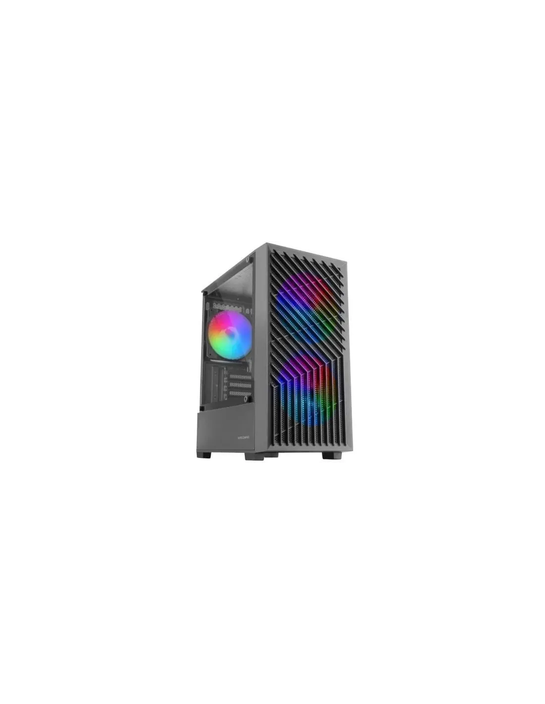 Características de la Caja Mars Gaming MC-VORTEX MicroATXLa Mars Gaming MC-VORTEX es una caja gaming de formato compacto ideal para quienes buscan montar un PC potente sin renunciar al diseño ni a la refrigeración. Su estructura optimizada para placas MicroATX y Mini-ITX, combinada con un frontal Mesh geométrico, ventana lateral de cristal templado y 3 ventiladores FRGB Rainbow preinstalados, garantiza un excelente flujo de aire y una estética imponente para tu setup.Diseño compacto y funcional con panel lateral de cristal templadoSu formato Mini Tower permite aprovechar al máximo el espacio interno sin sacrificar compatibilidad ni rendimiento. Incorpora un panel lateral de cristal templado que permite mostrar los componentes internos y la iluminación multicolor de los ventiladores.Compatible con placas base MicroATX y Mini-ITXVentana lateral de cristal templadoDiseño de doble cámara para mejor organización internaRefrigeración eficiente y personalizableGracias a su diseño orientado al flujo de aire, la MC-VORTEX incluye 2 ventiladores FRGB frontales y 1 trasero, todos de 120 mm. Además, ofrece espacio para instalar hasta 7 ventiladores y soporte para refrigeración líquida de 120 mm.3 ventiladores FRGB Rainbow de serie (2 frontales + 1 trasero)Capacidad total: hasta 7 ventiladores de 120 mmCompatible con radiadores líquidos traseros de 120 mmFrontal Mesh con estilo y ventilaciónEl panel frontal Mesh con diseño geométrico permite un flujo de aire constante hacia el interior del equipo, mejorando la temperatura general y dejando visible la iluminación RGB. El filtro antipolvo magnético superior protege los componentes internos del polvo y facilita el mantenimiento.Frontal Mesh con patrón angular para mejor ventilaciónEstética gaming moderna con iluminación multicolorFiltro antipolvo magnético en la parte superiorConectividad y facilidad de montajeCuenta con todos los puertos necesarios para conectar tus periféricos y accesorios de forma sencilla. Su sistema de gestión de cables ayuda a mantener una configuración limpia y ordenada.1 x USB 3.0, 2 x USB 2.0, conexión HD AudioSistema avanzado de gestión de cablesBotón de control de iluminación RGB integradoEspacio interno optimizado para alto rendimientoA pesar de su tamaño compacto, ofrece espacio para componentes de alto nivel. Soporta tarjetas gráficas de hasta 273 mm, disipadores de CPU de hasta 162 mm y varias unidades de almacenamiento.1 bahía para HDD de 3.5" y 2 para SSD de 2.5"Altura máxima para disipador CPU: 162 mmLongitud máxima GPU: 273 mmOtras especificacionesMateriales: SGCC, Mesh y vidrio templadoFuente de alimentación compatible: ATX (no incluida)Número de ranuras de expansión: 4Dimensiones: 205 x 325 x 390 mm (ancho x profundo x alto)Peso: 2,9 kg