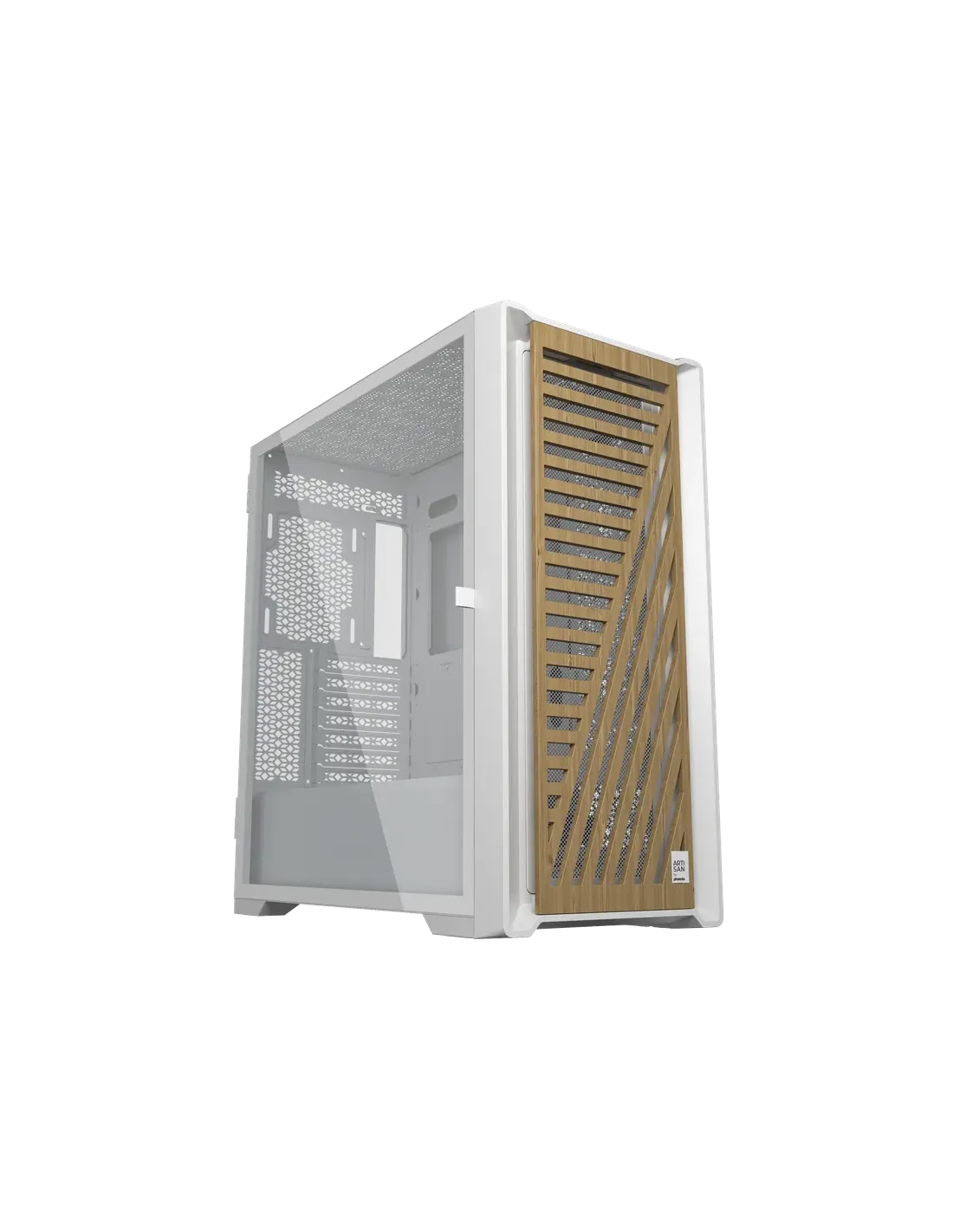 Caja ordenador phoenix gaming artisan noble blanca frontal de madera atx filtros antipolvo tipo c