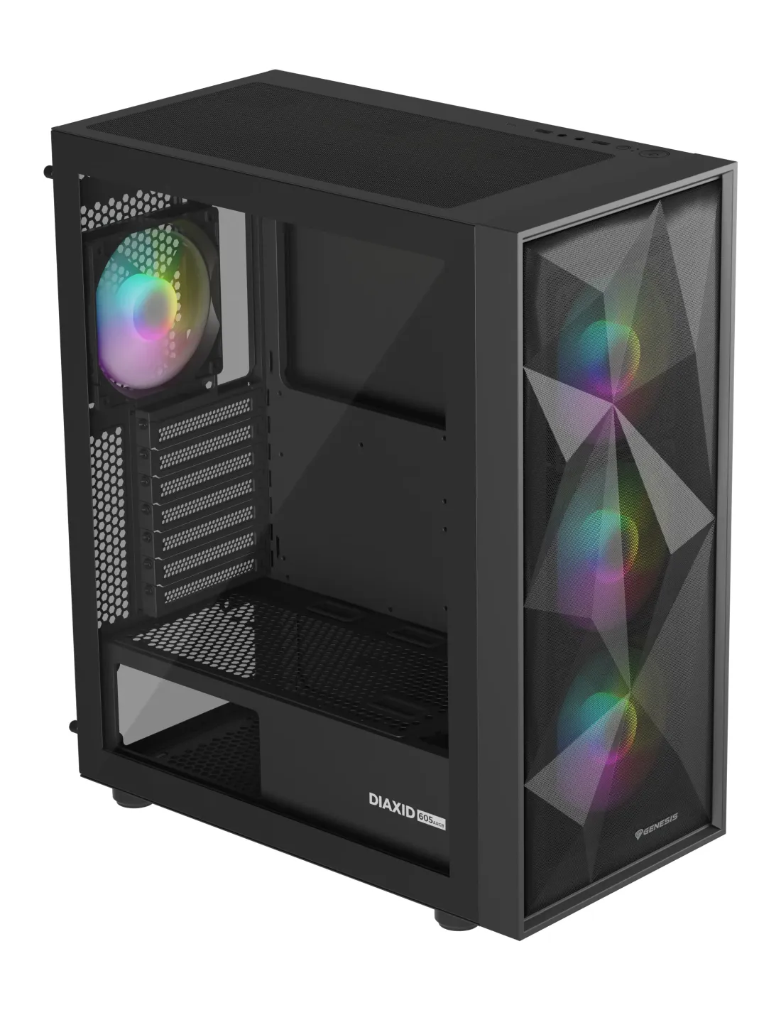 Duradera, elegante, eficiente. ¿En pocas palabras? GENESIS Diaxid 605 ARGB. Conoce la carcasa que hemos creado para los amantes de las bajas temperaturas, el alto rendimiento y el estilo único. Compatibilidad con refrigeradores AIO 420, hasta 4 ventiladores GENESIS Oxal 120 ARGB y filtrado total del polvo. Además, amplias opciones de montaje para los componentes. Acepta el reto y comprueba lo fácil que es montar el PC de tus sueños con la GENESIS Diaxid 605 ARGB.HASTA 4 VENTILADORES GENESIS OXAL 120 ARGBSaluda a hasta 4 ventiladores GENESIS Oxal 120 ARGB que ofrecen no sólo un alto rendimiento, sino también controlabilidad con la placa base. Además de su original diseño, también garantizarán silencio y temperaturas óptimas incluso en los días más calurosos. Hasta 3 de ellos (bombeando aire al interior) encontrarás en la parte frontal, mientras que el restante (extrayendo) en la trasera. Gracias a esta configuración, puedes contar con una presión positiva en el interior de la carcasa, que, combinada con un filtrado completo, protege aún mejor contra el polvo. ¿No es suficiente? 2 espacios adicionales en la parte superior e inferior de la caja te permitirán ampliar fácilmente la unidad como desees (incluido el montaje de hasta 3 ventiladores de 140 mm en la parte frontal).COMPATIBILIDAD CON AIO 420¿Buscas una carcasa que te dé plena libertad para montar un refrigerador de agua de una pieza? Con GENESIS Diaxid 605 ARGB verás lo fácil que es. La parte frontal de la carcasa te permitirá montar kits AIO 420/360/280/240/120 (incluidos grosores de radiador de hasta ~27 mm en la parte frontal en el caso del AIO 420). En la parte superior, por su parte, podrás contar con montar AIO 280 con radiador estándar (~27 mm) o AIO 240/140/120 "más gruesos" (con radiador de ~38 mm). Además, la parte trasera te permitirá montar una AIO 120 clásica, de forma sencilla y rápida.CON VISTAS A LAS POSIBILIDADESGENESIS Diaxid 605 ARGB es un modelo que hemos creado pensando en las posibilidades de construir unidades de alto rendimiento. Esto significa no sólo excelentes propiedades de refrigeración, sino también la posibilidad de montar componentes de forma totalmente considerada. Compatibilidad con placas ATX, microATX, mini-ITX, 2 ranuras para soportes SSD de 2,5", 1 ranura para HDD de 3,5" y 1 ranura híbrida 2,5"/3,5". Además de tarjetas gráficas con una longitud máxima de ~351 mm y torres de refrigeración con una altura de ~168 mm. Apuesta por una carcasa que cumpla tus expectativas.DESHAZTE DEL POLVOCon GENESIS Diaxid 605 ARGB no tendrás que preocuparte por el polvo. Los filtros magnéticos situados en la parte superior e inferior de la carcasa protegerán tus componentes de él. Si es necesario, puedes limpiarlos fácilmente con un paño húmedo, deshaciéndote de la suciedad en sólo unos segundos. El conjunto se complementa con un panel de malla frontal, cuya malla es más pequeña (~0,8 mm) que en los filtros estándar. Una mayor densidad se traduce en las ventajas de unas mejores propiedades de filtrado y menos polvo en el interior.FUNCIONALIDAD ES SU 2º NOMBRE¿Utilizas puertos USB y te importa la funcionalidad? Es un gran negocio. En la parte superior del GENESIS Diaxid 605 ARGB encontrarás no sólo un moderno puerto USB-C (Gen 2 hasta 10 Gbit/s), sino también 2 × USB Tipo A (3.2 Gen 1). También podrás conectar sin esfuerzo un kit de audio con una entrada independiente para audio y micrófono (2 × 3,5 mm). Numerosos ojales, un sótano y rejillas de goma son los elementos que hacen que el GENESIS Diaxid 605 ARGB sea funcional por dentro. Nunca ha sido tan fácil instalar componentes de forma cuidadosa y estética.