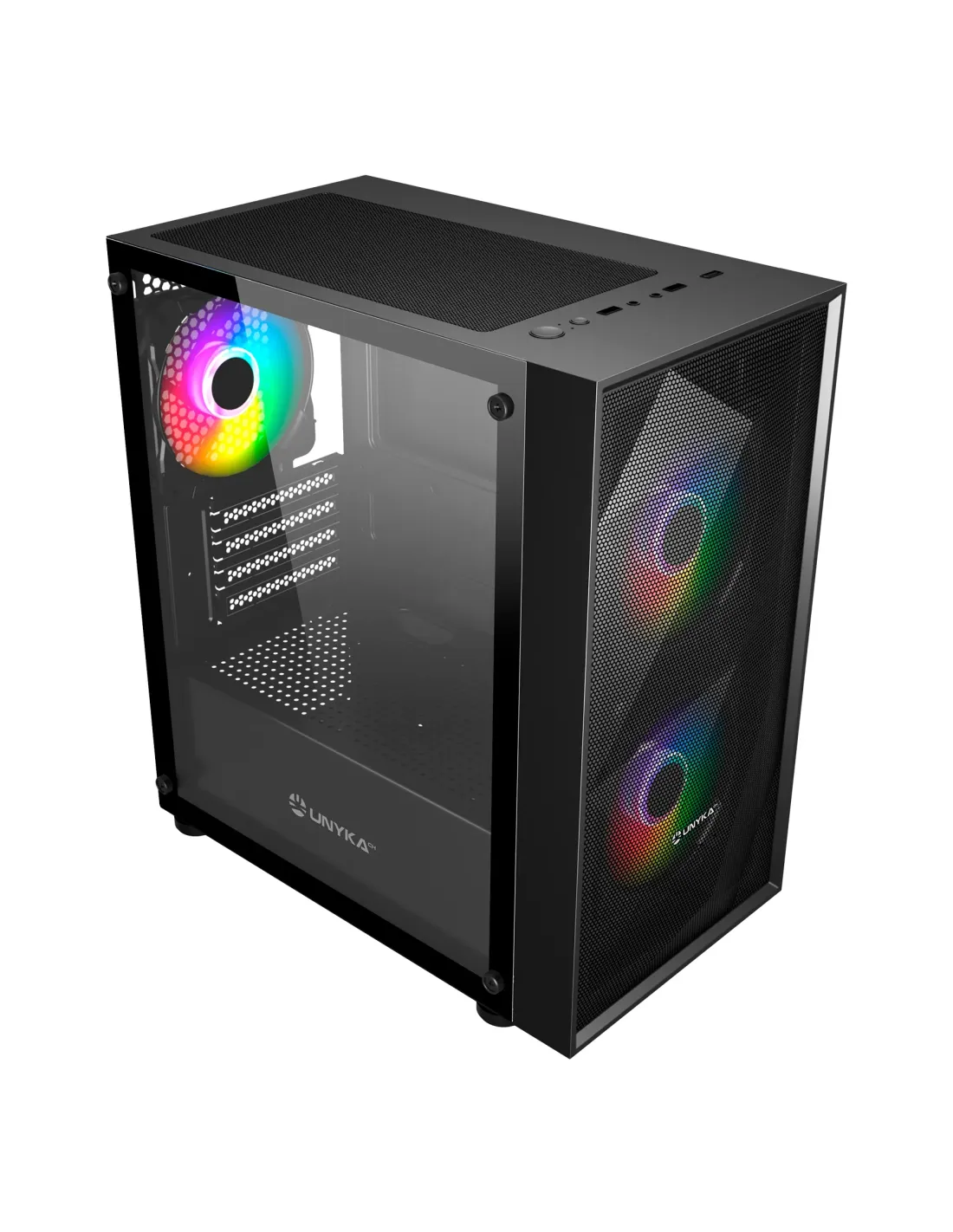 Caja ordenador gaming unyka mir b200 matx argb cristal templado negro