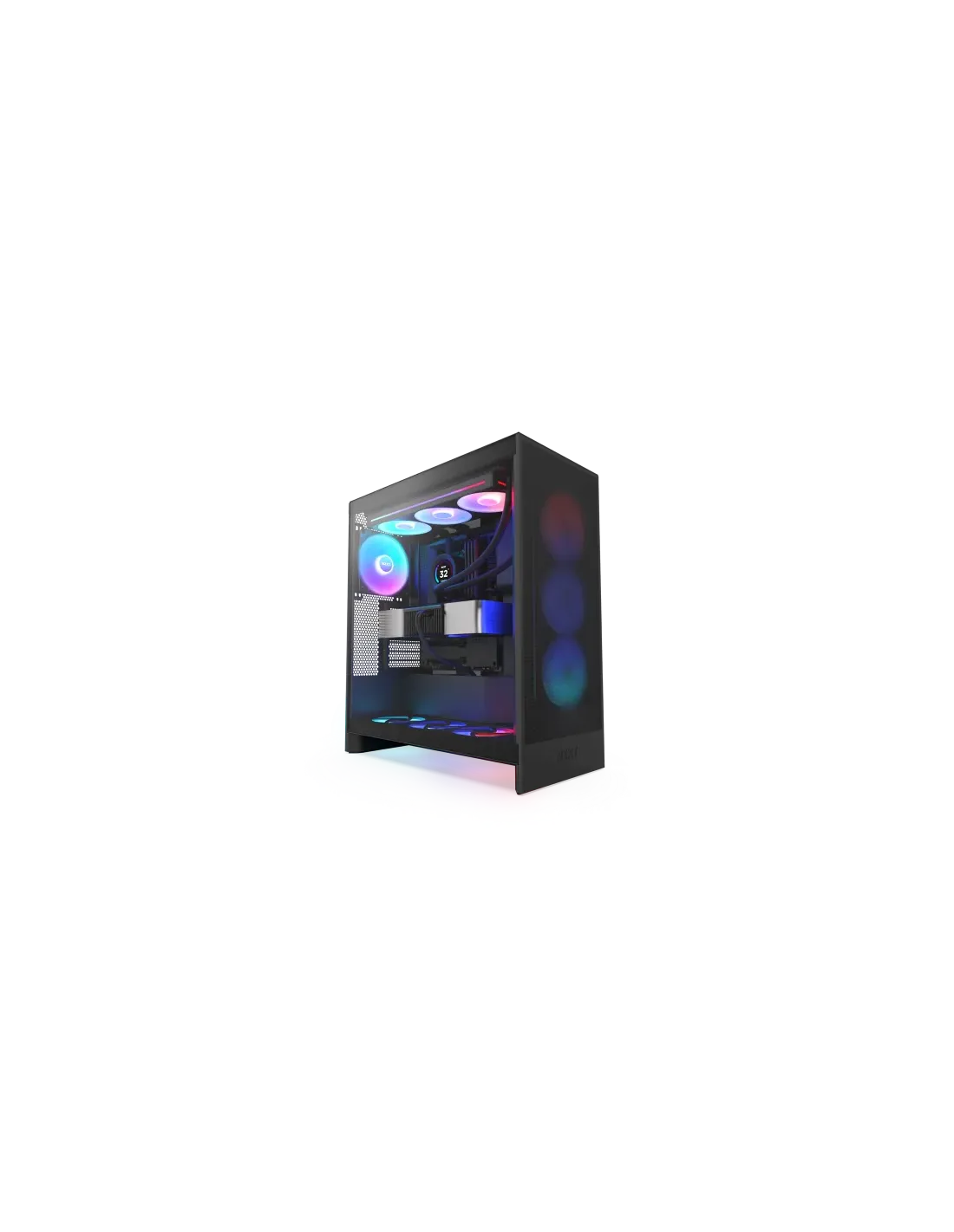 NZXT H7 Flow RGB. Factor de forma: Midi Tower, Tipo: PC, Color del producto: Negro. Ventiladores frontales instalados: 3x 120 mm, Diámetro de ventiladores frontales soportados: 120,140 mm, Diámetro de ventiladores traseros soportados: 120,140 mm. Tamaños de disco duro soportados: 2.5,3.5". Ancho: 244 mm, Profundidad: 468 mm, Altura: 544 mm
