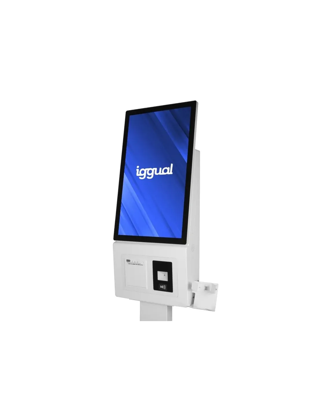 El kiosco interactivo ORCHID 27” es la solución perfecta para ofrecer una experiencia digital fluida, visual e intuitiva en entornos comerciales, educativos o de servicios. Con una pantalla táctil Full HD de 27 pulgadas y diseño vertical, este terminal combina la funcionalidad de un TPV con la elegancia de un soporte autoportante.Gracias a su interfaz táctil capacitiva y su sistema Windows 11 Pro integrado, permite mostrar catálogos, gestionar turnos, registrar citas, lanzar promociones o facilitar procesos de pago de forma autónoma. Es ideal para tiendas, supermercados, clínicas, hoteles, centros educativos y todo tipo de espacios públicos que buscan optimizar la atención al cliente.Diseñado para resistir un uso intensivo, el ORCHID incorpora una estructura robusta, conectividad completa y un diseño moderno y limpio que encaja en cualquier ambiente profesional.iggual te ofrece tecnología funcional, duradera y asequible para digitalizar tu punto de atención con total confianza. Marca iggual Modelo IGG319932 (ORCHID KI-27) Sistema Operativo - Windows 11 Pro (instalado) Pantalla - Tipo: TFT LED - Tamaño: 27" (vertical) - Formato: 9:16 - Área de visualización: 336 x 593 mm - Táctil: capacitivo (10 puntos) - Resolución: 1080 x 1920 px (FHD vertical) - Luminosidad: 250 cd/m2 - Rango de contraste: 1500:1 - Frecuencia: 75 Hz - Respuesta táctil: 6 ms - Ángulo visión: 89º (todas direcciones) - Color LCD: 16,7 M Procesador - Procesador: Intel Core i5 12450H (12ª generación) - Velocidad de reloj: 2.0 GHz - Frecuencia turbo (máx): 4.40 GHz - Caché: 12 MB Memoria - RAM: 8 GB DDR4 (3200 MHz) - Disco duro SSD: 256GB mSATA Conectividad - 3 x USB 2.0 (exteriores) - 1 x Ethernet Gigabit RJ45 (interior) - WiFi (doble antena interior) - Bluetooth Impresora - Tipo: térmica de tickets - Ancho máximo del papel: 80 mm - Diámetro máximo del rollo: 80 mm - Ancho máximo de impresión: 72 mm - Conectividad: USB - Baudios: 9600 - 11520 - Corte de papel automático, total o parcial - Tapa equipada con cerradura de llave - Incluye juego de 2 llaves Lector de códigos de barras - Códigos de barras admitidos: 1D y 2D - Densidad del código de barras: 1D: ≥5 mil / 2D: ≥10 mil - Sensor: CMOS plano 640x480 - Modo de lectura: imagen - Fuente de luz: banda de luz LED roja (lectura) + luz LED blanca (iluminación) - Ángulos de escaneo: giro 360º, inclinación 60º, rotación 60º Lector de NFC - Frecuencia: 13.56MHz - Rango: 2 a 10 cm - Tarjetas soportadas: Mifare (One S50/S70 y UltraLight NTAG213/215/216) Otros - Altavoz: 2 x 2W - Entrada (AC): 110–220V 50/60Hz - Incluye soporte universal para datáfono (a la derecha) - Tres tipos de instalación: pared, mesa o suelo - Incluye soporte para pared, peana para suelo y base para mesa - Ventilación natural: sin ventilador - Tapa trasera equipada con cerradura de llave - Incluye juego de 2 llaves - Vida útil: 50.000 horas - Temperatura de operación: 0ºC a 45ºC - Temperatura de almacenamiento: -10ºC a 50ºC - Humedad de operación: 5% a 85% (sin condensación) - Humedad de almacenamiento: 5% a 85% (sin condensación) Medidas y peso - Medidas monitor (panel + marco): 651 alto x 393 ancho x 18 profundo mm - Medidas totales (mesa): 480 ancho x 200 profundo x 926 alto mm - Medidas totales (suelo): 520 ancho x 460 profundo x 1.831 alto mm Fecha de revisión 09-04-2026 por SB