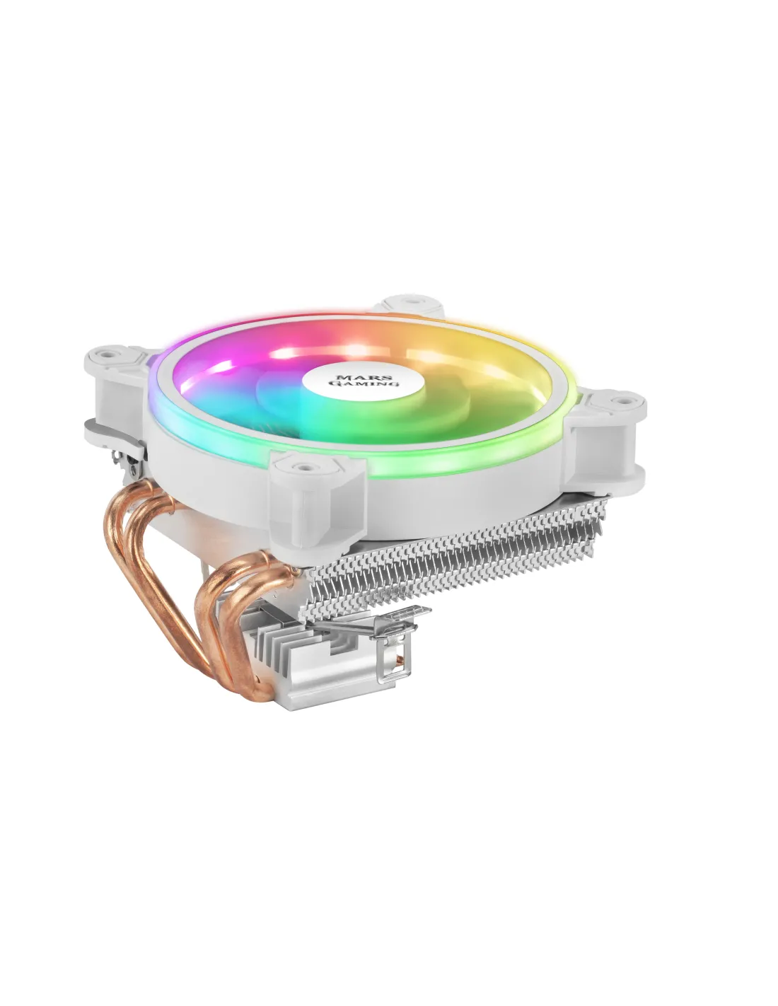 Mars Gaming MCPU220W, Disipador CPU Blanco, TDP 140W, Dual ARGB, Silencioso PWM. Tipo: Enfriador, Diámetro de ventilador: 12 cm, Velocidad de rotación (mín.): 900 RPM, Velocidad de rotación (máx.): 2200 RPM. Voltaje: 12 V. Ancho: 123 mm, Profundidad: 84 mm, Altura: 120 mm. Color del producto: Blanco