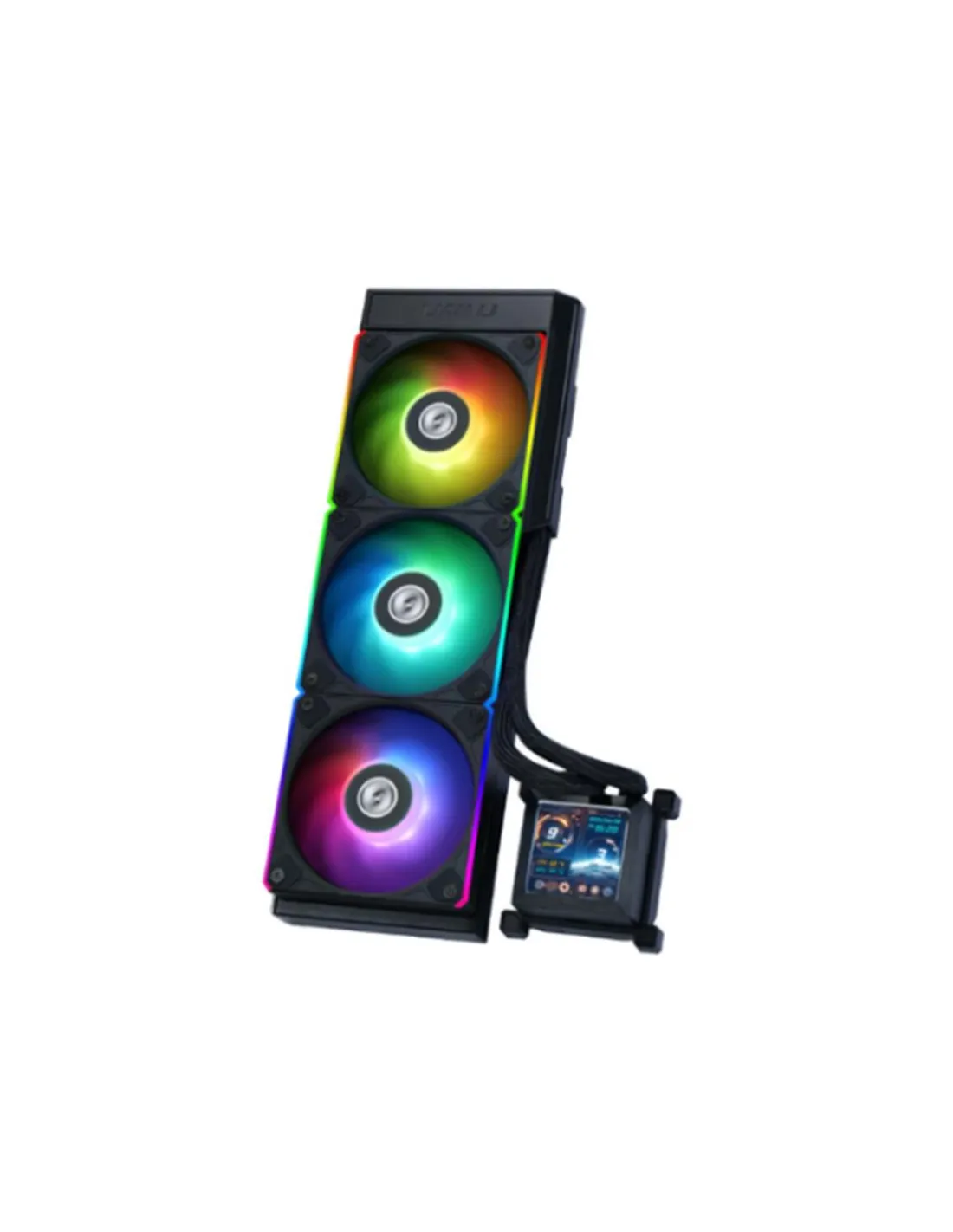 El radiador de 360 mm y los tres ventiladores de 120 mm con rodamientos dinámicos fluidos garantizan una disipación térmica eficiente incluso en sesiones de uso intensivo. Gracias a su bomba de alto rendimiento y a la conectividad PWM, la gestión de velocidad es automática y precisa, adaptándose según la carga del sistema.