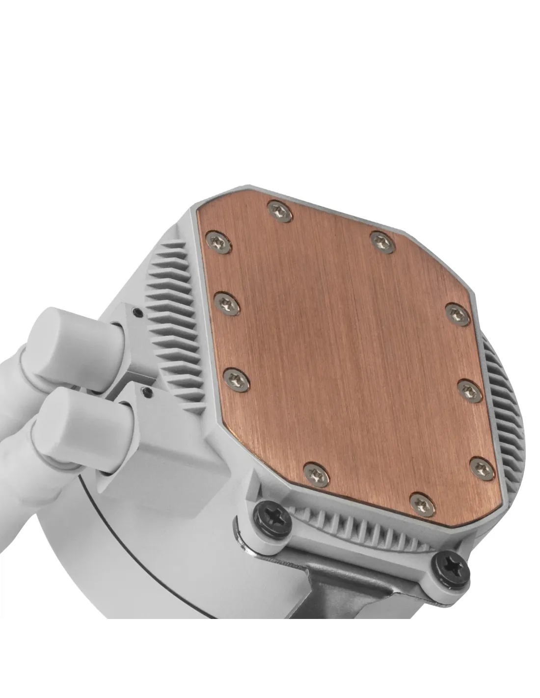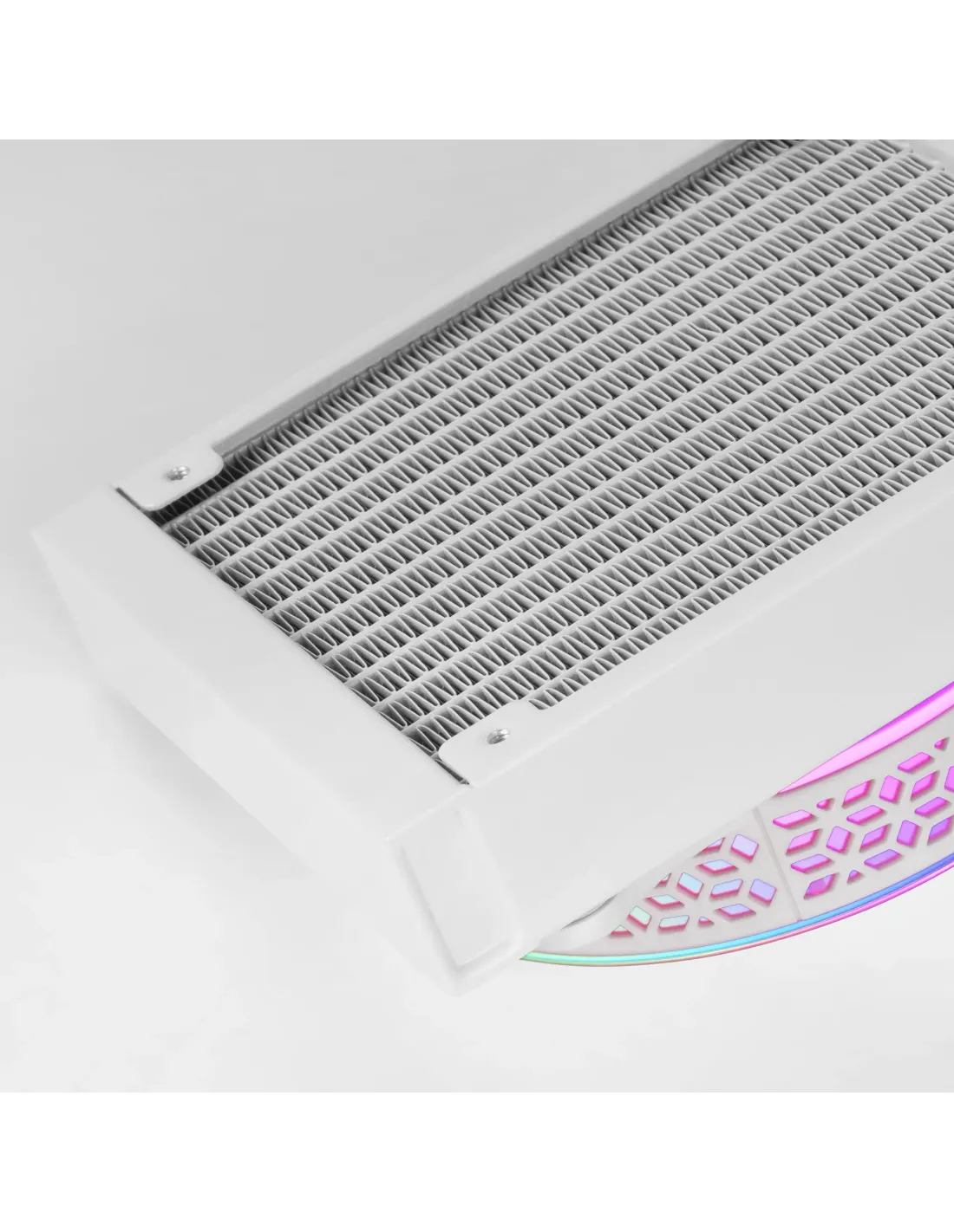 Espejo infinito FRGB y un rendimiento excepcional en sistemas de refrigeración líquida con una extraordinaria potencia de hasta 200W. Nueva bomba OPTI-CHAMBER, ventilador silencioso FDB FRGB, radiador de baja resistencia y compatibilidad universal