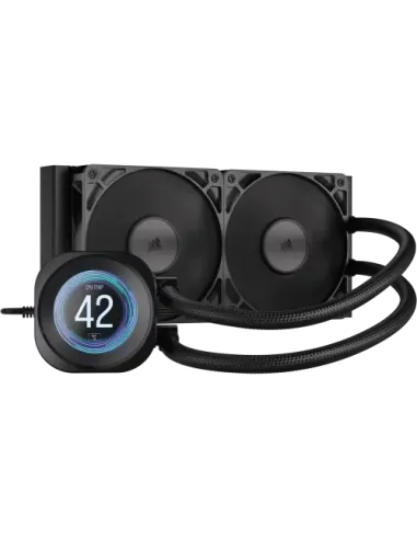 Corsair Nautilus 240 RS LCD. Tipo: Sistema de refrigeración líquida todo en uno, Diámetro de ventilador: 12 cm, Velocidad de rotación (mín.): 420 RPM, Velocidad de rotación (máx.): 2100 RPM, Presión de aire mínima: 0,2 mmH2O, Presión máxima de aire: 4,15 mmH2O. Ancho: 125 mm, Profundidad: 275 mm, Altura: 125 mm. Color del producto: Negro