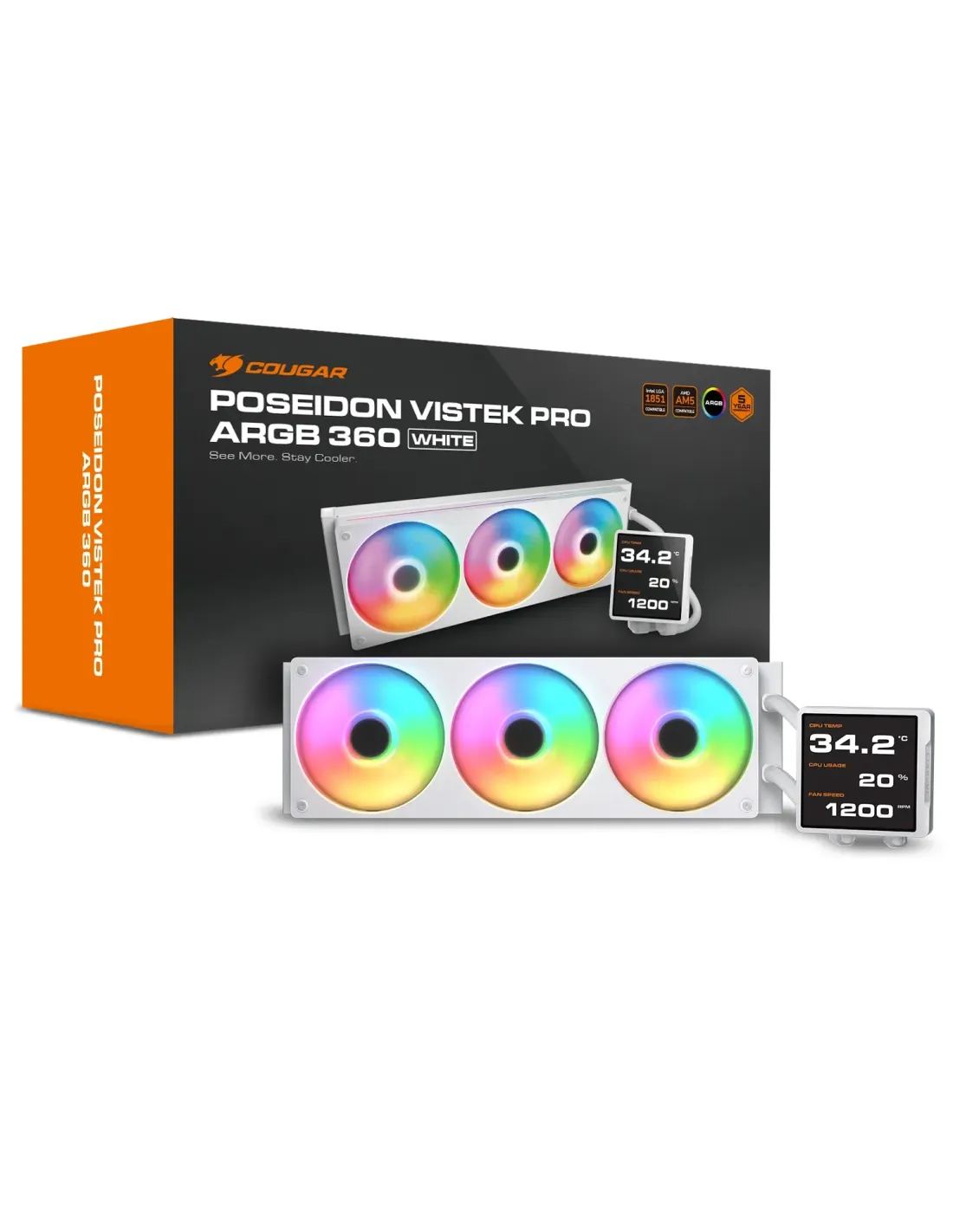 COUGAR Poseidon Vistek Pro ARGB 360, Sistema de refrigeración líquida todo en uno, 12 cm, 700 RPM, 2500 RPM, Blanco