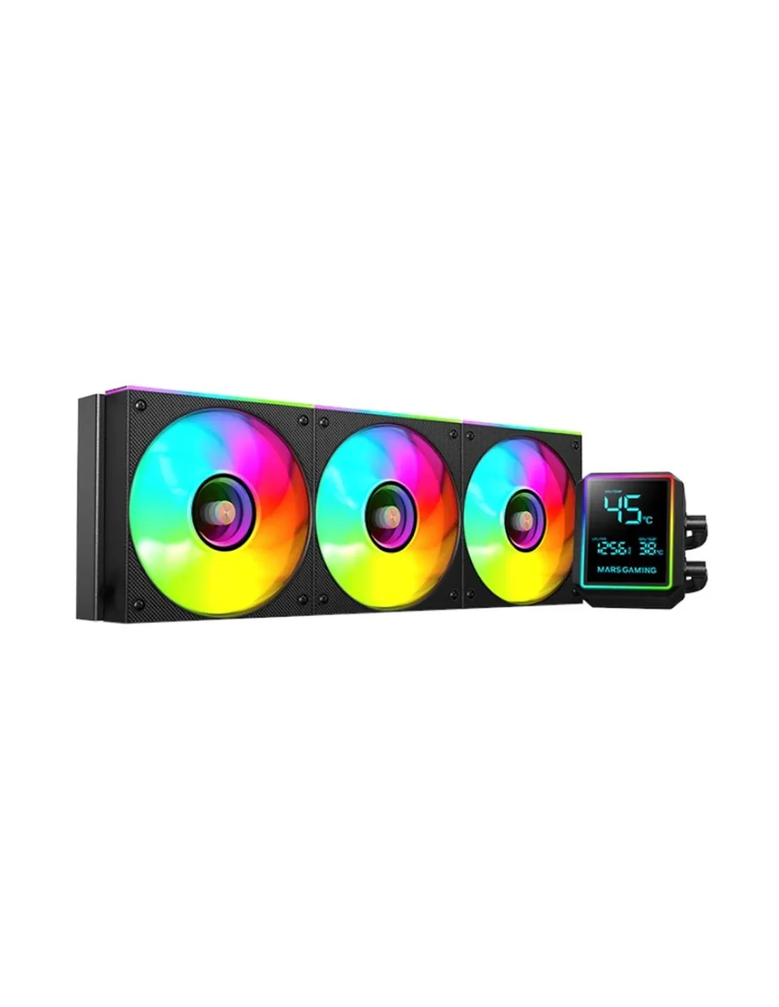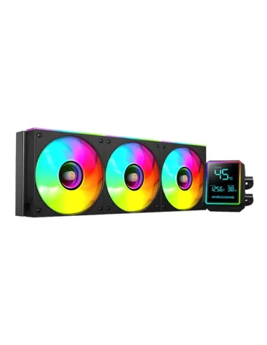La refrigeración líquida **MARS GAMING MLLCDPRO360 AIO** está diseñada para ofrecer un rendimiento extremo en sistemas exigentes, combinando una alta capacidad de disipación térmica con una estética ARGB avanzada. Ideal para entusiastas del gaming y usuarios que buscan mantener sus CPUs a bajas temperaturas incluso bajo carga intensa, esta solución All-in-One destaca por su compatibilidad ampliada, su bajo nivel sonoro y un diseño profesional con pantalla LCD integrada.