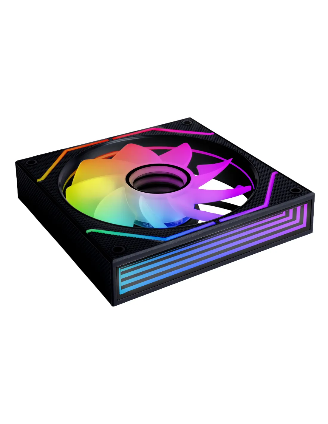 El MF-3DPROX2R incorpora aspas invertidas que maximizan el flujo de aire sin comprometer la estética. Su diseño permite montar los ventiladores en zonas visibles como la base o la parte trasera del chasis, mostrando en todo momento la espectacular iluminación y su efecto Infinity Mirror frontal. Una opción perfecta para setups con estilo propio y visibilidad total, donde el diseño y el rendimiento van de la mano.