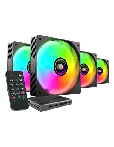 El MF-SI4KIT es un completo kit de 4 ventiladores ARGB de 120mm con efecto Infinity Mirror, con hub de control avanzado para hasta 10 ventiladores y un mando a distancia para una gestión total sin necesidad de software. Con núcleo de cobre y rodamientos FDB ultrasilenciosos, este kit combina alto rendimiento térmico, silencio absoluto y una estética ARGB espectacular. Ideal para quienes buscan un setup potente, estable y totalmente personalizable.