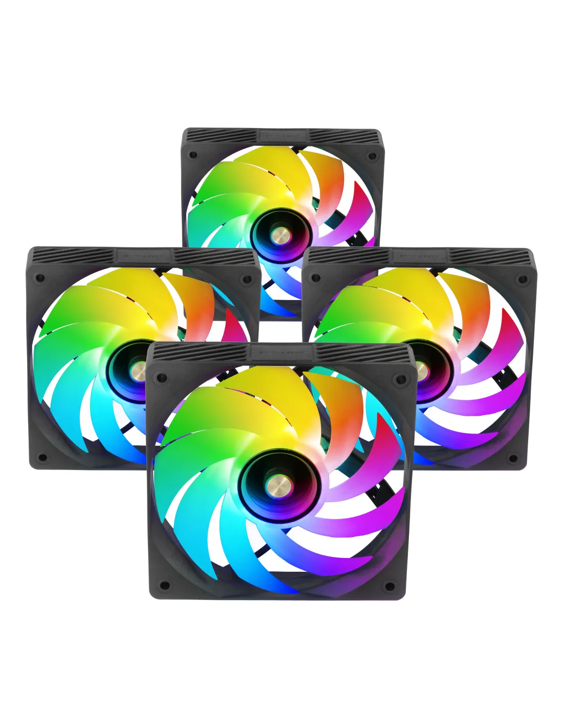 Cada ventilador del MF-SI4KIT cuenta con un sistema de iluminación ARGB con efecto Infinity Mirror en el núcleo, que crea una profundidad visual impresionante desde cualquier ángulo. Un toque de estilo envolvente para transformar cualquier chasis en una exhibición visual.