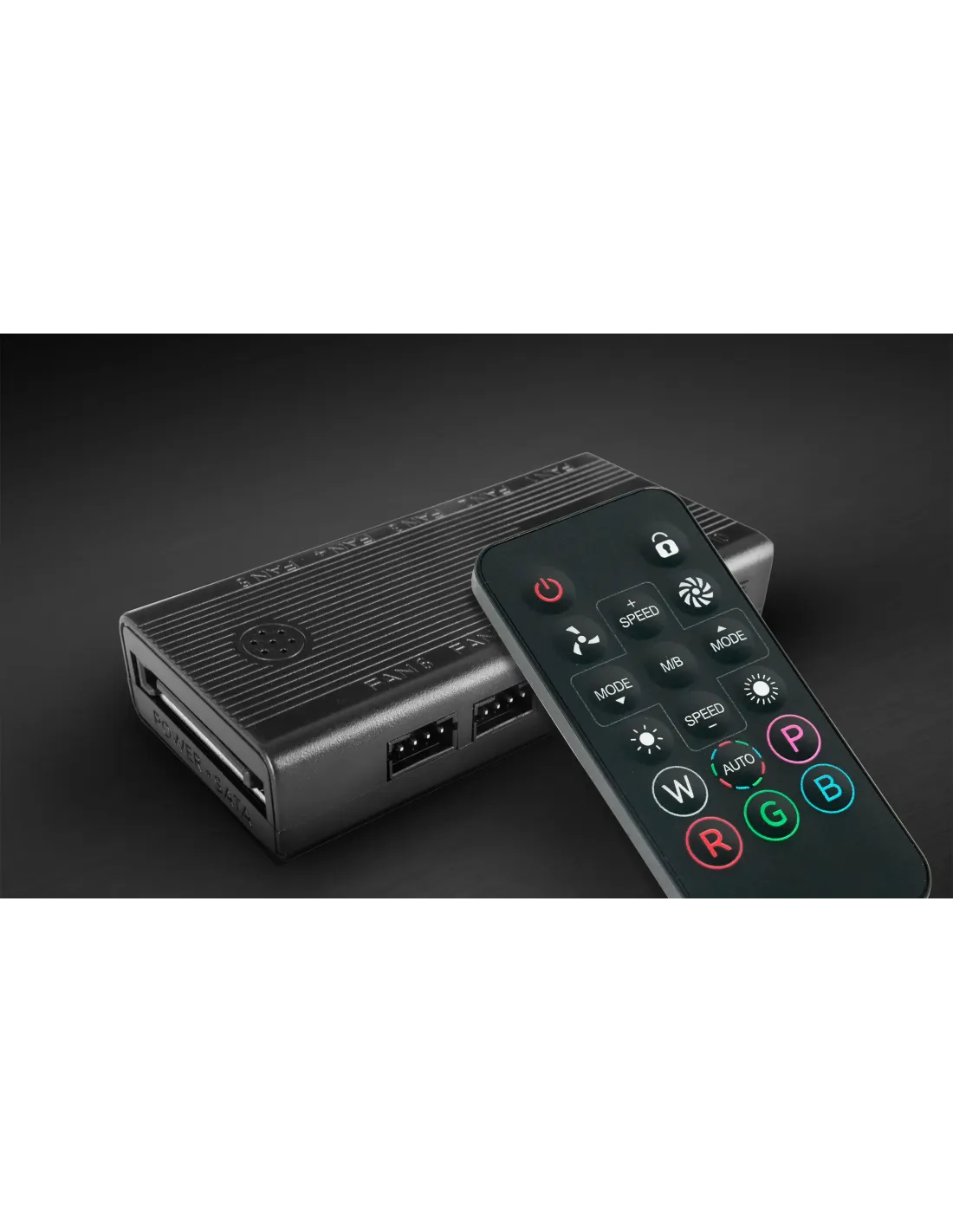 El MF-SI4KIT incluye un potente hub ARGB para hasta 10 ventiladores y un mando a distancia con el que podrás controlar la iluminación y velocidad en tiempo real.