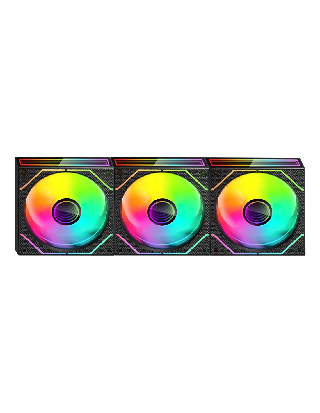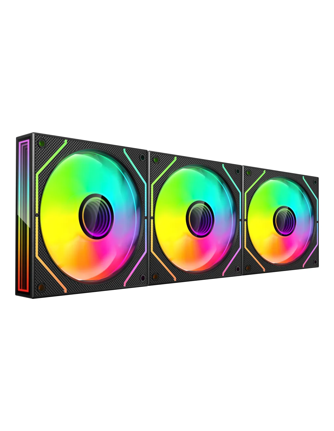 Características del Kit 3x Ventilador Interno ARGB Mars Gaming MF3DPROKIT Negro 120mm + ARGB Hub + RF RemoteEl kit Mars Gaming MF3DPROKIT es la solución perfecta para quienes desean mejorar tanto el rendimiento térmico como la estética de su PC. Con tres ventiladores de 120 mm, tecnología de iluminación Infinity Mirror 3D ARGB, control total mediante HUB y mando a distancia, y funcionamiento ultra silencioso, este conjunto está diseñado para entusiastas del hardware, modders y usuarios exigentes que buscan una experiencia visual y de refrigeración superior.Iluminación Infinity Mirror 3D ARGB: efecto visual envolventeCada ventilador incorpora un espectacular diseño con espejo infinito tanto en el núcleo como en los bordes, creando una sensación de profundidad luminosa sin fin. La iluminación ARGB es totalmente personalizable y ofrece efectos dinámicos multicolor que se integran con el resto de tu sistema.Iluminación ARGB con efecto Infinity Mirror 3DCompatible con ASUS Aura Sync, MSI Mystic Light y RGB FusionConector LED de 3 pines ARGB (5V)Refrigeración eficiente y funcionamiento silenciosoGracias a los rodamientos Fluid Dynamic Bearing (FDB), el funcionamiento de cada ventilador es fluido, silencioso y duradero. Además, el sistema PWM permite ajustar la velocidad según las necesidades térmicas del equipo, garantizando el equilibrio perfecto entre flujo de aire y nivel de ruido.Velocidad ajustable: 600 - 1600 RPM (PWM)Flujo de aire: hasta 43 CFMNivel de ruido ultra bajo: solo 12 dBControl total sin complicacionesEl kit incluye un HUB ARGB con capacidad para hasta 10 ventiladores y un mando a distancia por RF que te permite modificar los efectos de iluminación y controlar la velocidad de los ventiladores sin necesidad de software adicional. Todo el control, al instante y de forma centralizada.HUB con 10 puertos para ventiladores y 10 puertos ARGBControl remoto incluido (RF)Voltaje del HUB: 5/12 VDiseño robusto y fácil de instalarFabricados en color negro y con un diseño de 9 aspas por ventilador, estos componentes ofrecen una excelente presión de aire y estabilidad. El kit incluye los tornillos de montaje y está listo para instalarse en cualquier torre compatible.Dimensiones de cada ventilador: 120 x 120 x 25 mmPeso individual: 165 gIncluye tornillos de instalaciónCompatibilidad y conectividad ampliadaEl kit está preparado para integrarse sin esfuerzo con configuraciones actuales gracias a sus conectores estándares. Ideal para setups gaming, PC de alto rendimiento o estaciones de trabajo personalizadas.Conector de ventilador: 4 pinesVoltaje de funcionamiento: 12 V (ventilador) / 5 V (LED)Corriente por ventilador: 0.25 AOtras especificacionesTipo de rodamiento: FDB (Fluid Dynamic Bearing)Presión máxima de aire: 2.48 mmH2OMTTF: 60,000 horasContenido del paquete: 3 ventiladores, HUB, mando RF, tornilleríaTipo de embalaje: Caja (dimensiones: 142 x 82 x 162 mm)