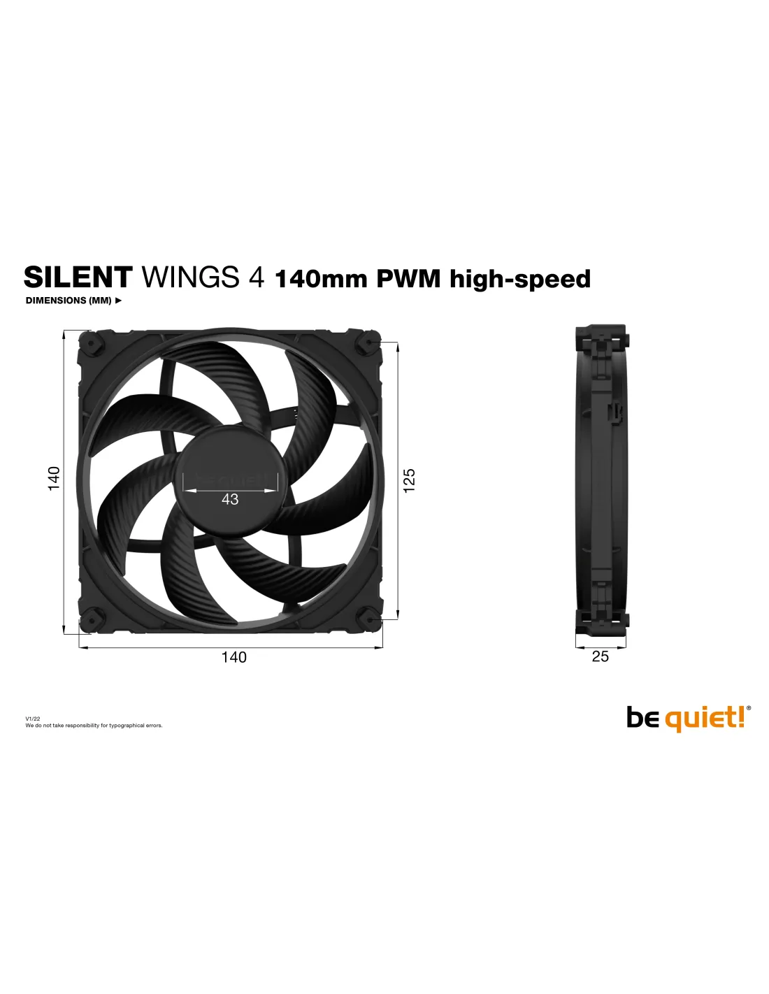 be quiet! SILENT WINGS 4 | 140mm PWM high-speed, Ventilador, 14 cm, 1900 RPM, 133,2 m³/h, Negro
